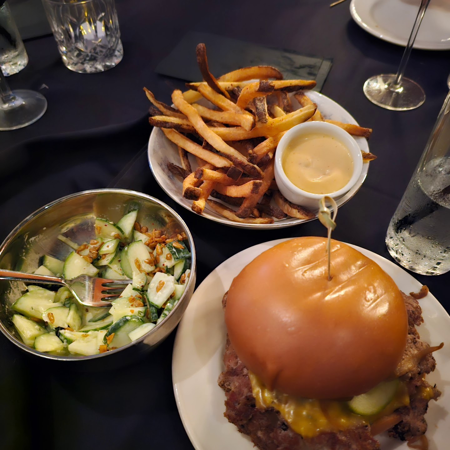 On to probably, arguably, my favorite part of a new restaurant adventure, THE FOOD! When I say this food is worthy of a much larger metropolis, I completely mean it. The menu contains approachable flavors, artfully spun together into delectable (and cost effective) fare. The sandwiches are large! The trice cooked fries were perfectly crisp and not oily, paired great with their spicy agave mustard with its kick of horseradish I personally adored! We also tried their cucumber salad side and their kale salad, both absolute crowd pleasers at our table. Cucumbers were crisp and the sauce delectable - a good size portion I was very happy with too! The kale salad was not bitter and filled with the perfect level of tasty tidbits kicking it up all the notches one could need.
