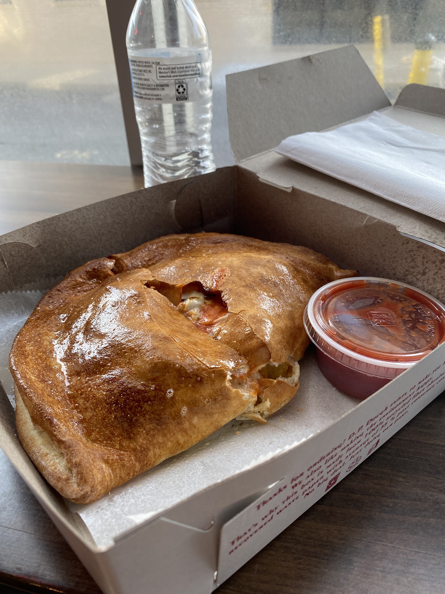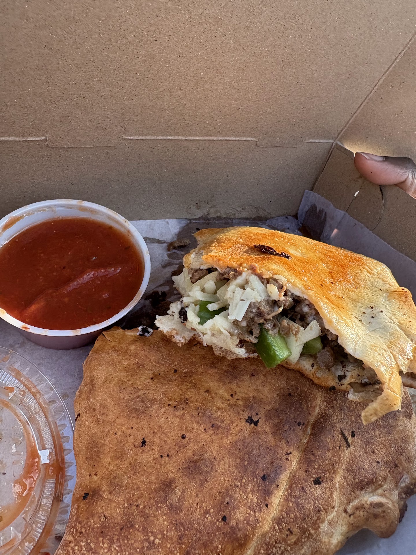 Read moreI was so excited to finally stop and try this restaurant, just to be met with extreme disappointment. I walked in to make my order and decided to get the End Zone which has steak onions peppers and cheese; I decided to wait for a little outside while my order was being made less than five minutes I walk back in and my order was already packed and ready to go which was a red flag because I assumed it would be made to order and that would take longer than 3 mins. I get my food, walk a block away to sit and eat.. I picked it and it wasn’t even hot, barely warm then I noticed the cheese wasn’t even melted! I touched the inside and it was COLD! Very disappointing! I still decided to taste the outter portion that was warm and it was bland af. The dough tasted like.. boiled water and the steak was rubbery. I love pizza so I had high hopes but this...
