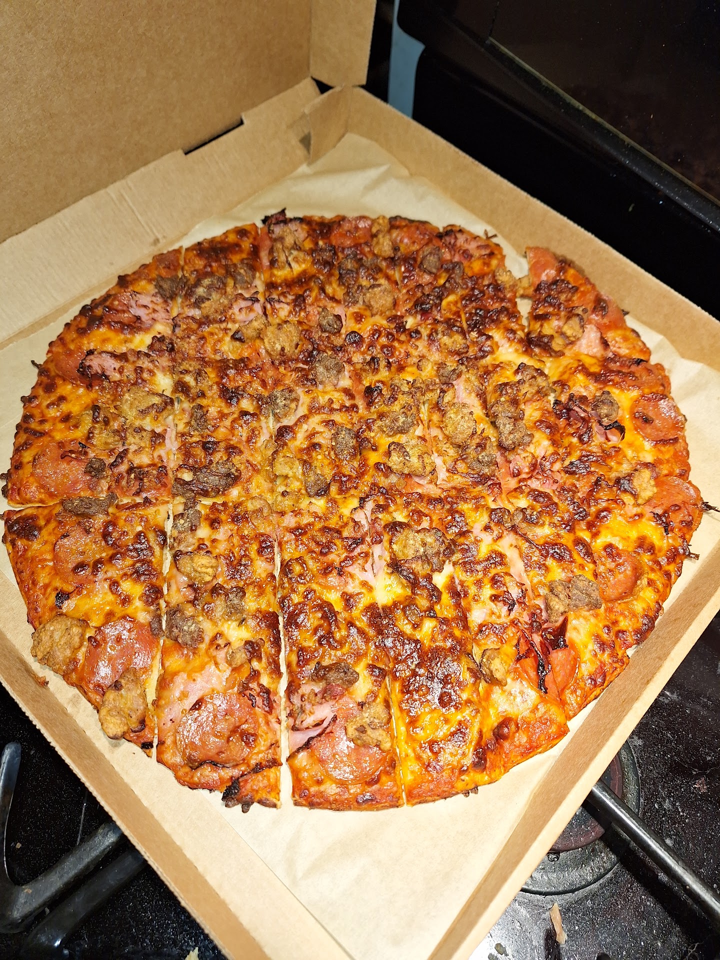 Round TWO (202405): MUCH BETTER. Also got a salad - quality (see photo) - highly recommend grabbing a salad - and they DID NOT CUT THE PIE - thank you. Star rating revised. ..Round One... I ordered through the App (you know - saves them time - and like too many - they SHOVE a tip down your throat)... I had but ONE request - DO NOT CUT... Arrived 2 minutes before the designated (future) pickup time - and sat and watched them sauce two or three more pies - awhile watching my two in the window ready to go- 15 min drive, so I do not disturb the pies - only to get home and find they were DTW cut... I DID LEAV E A TIP - and for what - to have you cut when I requested not too, and to have them sit there and have me watch then so you can put sauce on a few more pies... I will give you 1 more chance - but if following instructions and actually offering customer service don't find their way into your store - the next review will take...