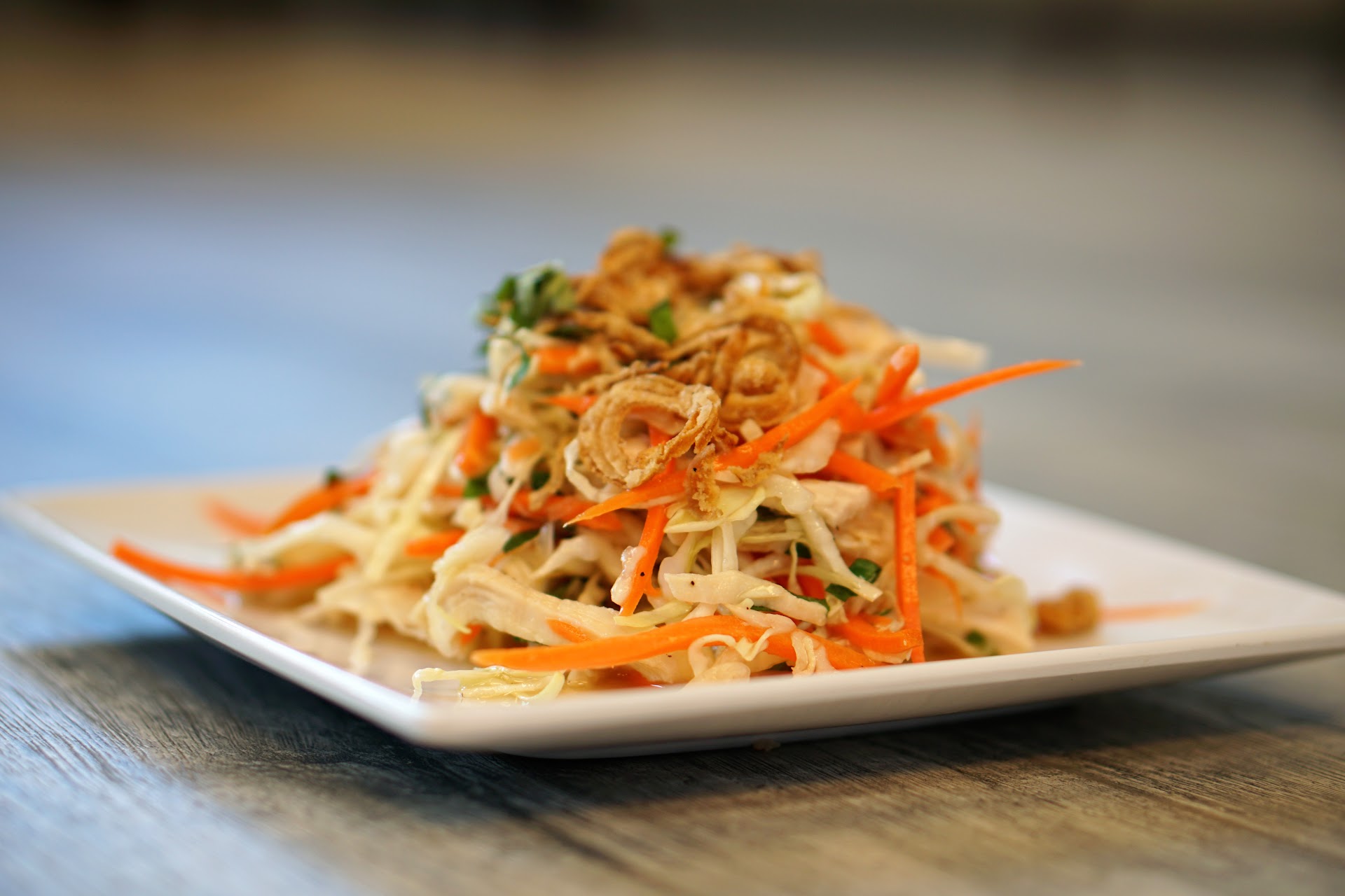 Taro milk tea with Boba was creamy and delicious, not too sweet which I appreciated. Papaya Salad was delicious--crunchy tart and and refreshing. We also enjoyed the Vietnamese salad, and actually enjoyed putting it into our Banh Mi's. My kids went to town on the Boba tea.