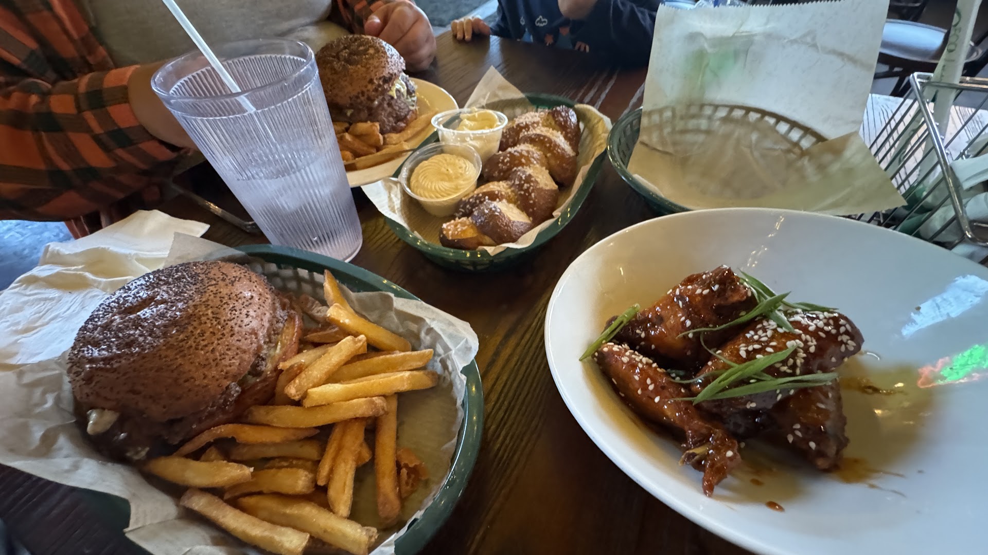 We went with a pretzel appetizer in the French demi epi style, which came with two delicious dips, to die for. The brown butter cream cheese was amazing with it.