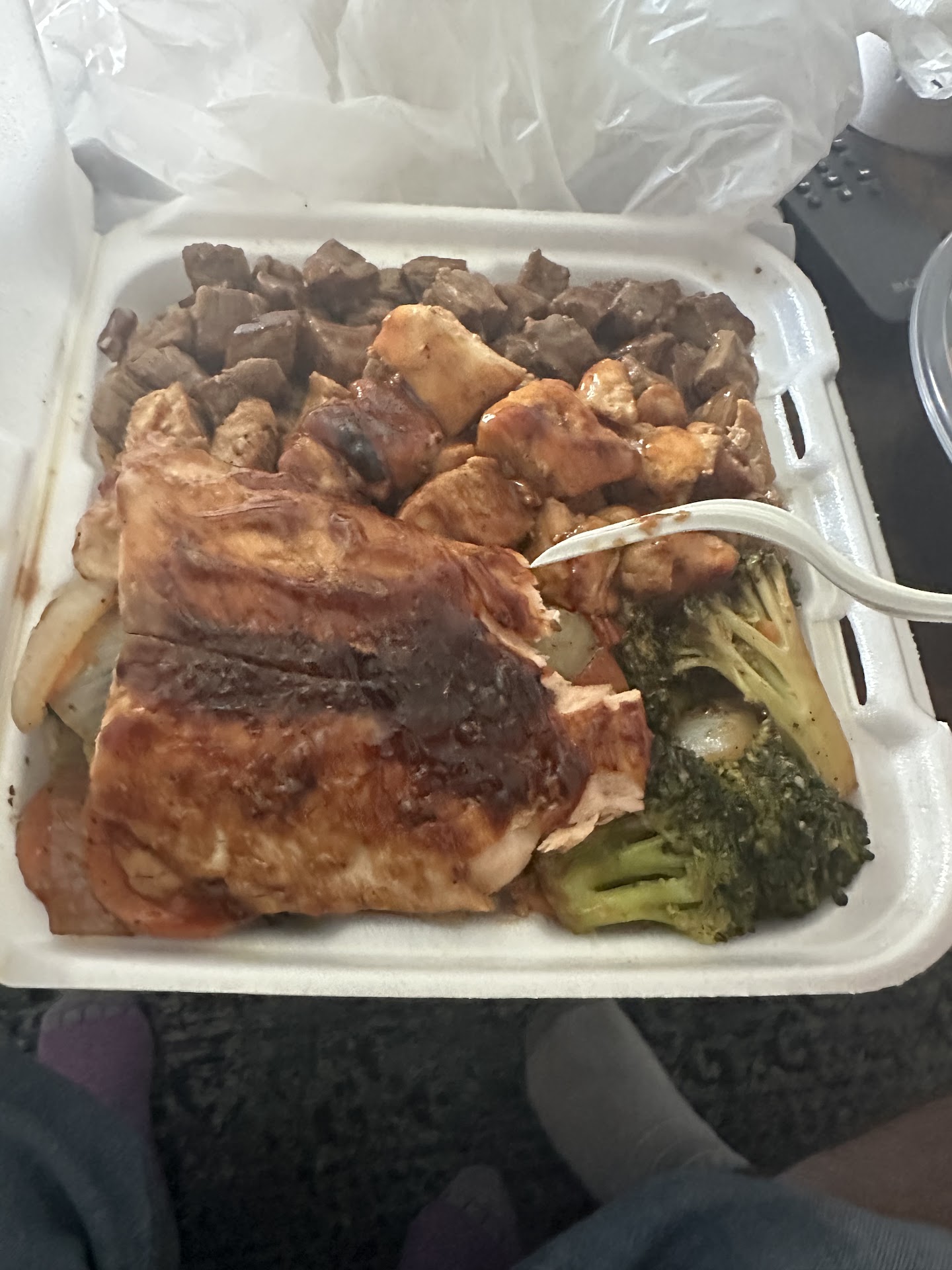 Read moreI was dissapointed coming here for the first time after seeing it had 4.5 stars. I stuck with something simple - chicken & noodles. Im not sure what sauce they put on, but it was not just terriaki and tasted absolutely terrible. The noodles were super creamy and had way to much pepper on them. The vegetables tasted cheap, were not cooked at all, and were lacking in variety. The meat did not taste the best either.