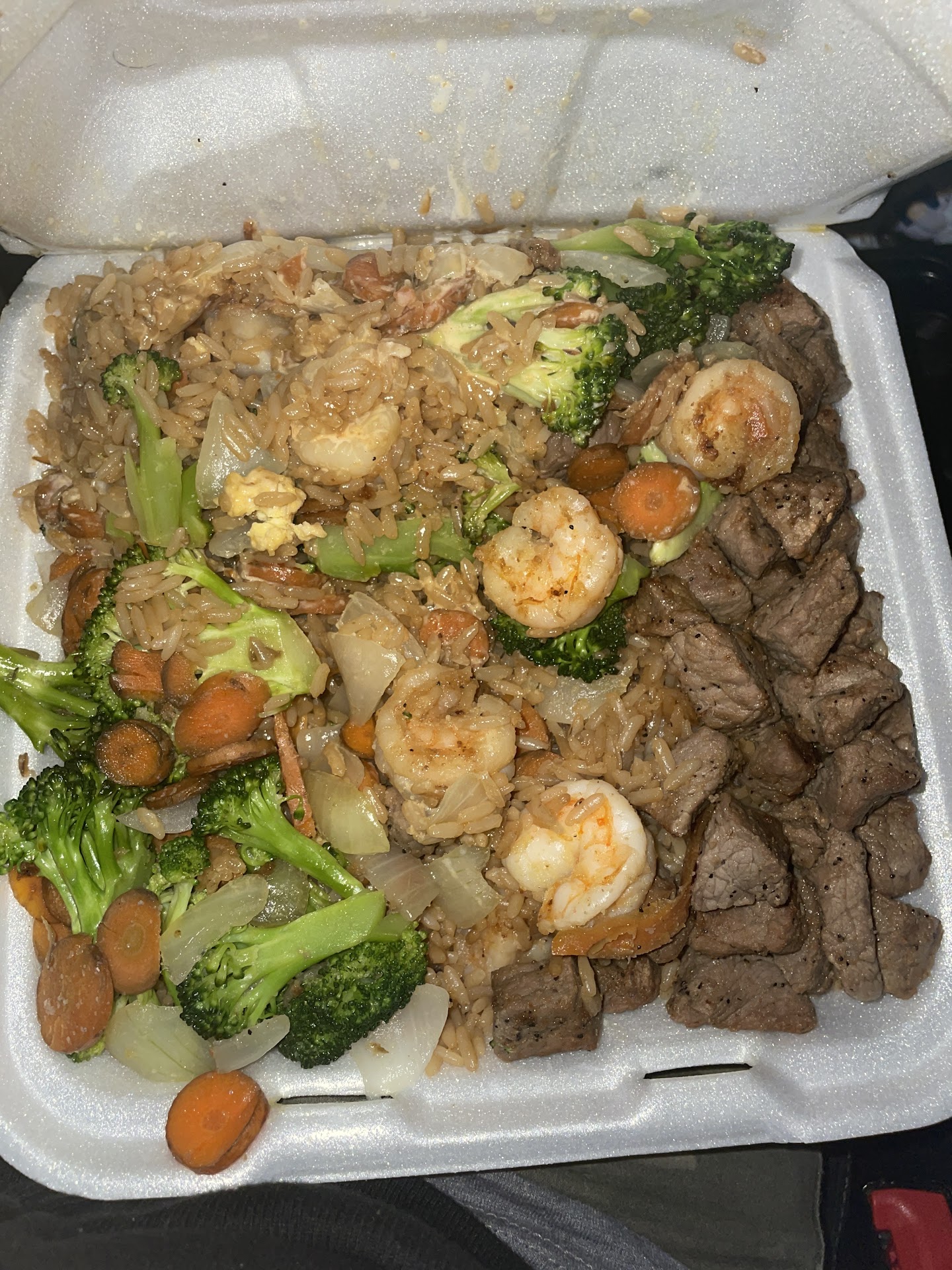 Read moreStopped here on my route for A quick lunch. Worst decision ever!! This is not hibachi the least bit. I ordered A shrimp snack size hibachi as I am pescatarian & it was terrible 9 small CHEAP shrimp that was tough because it was over cooked. The rice terrible overcooked and no flavor carrots were dried out and hard. Broccoli was decent but this is the FURTHEST thing from HIBACHI I’ve ever experienced. I’m from Cleveland and I’m out this way quite A bit for work and will never...