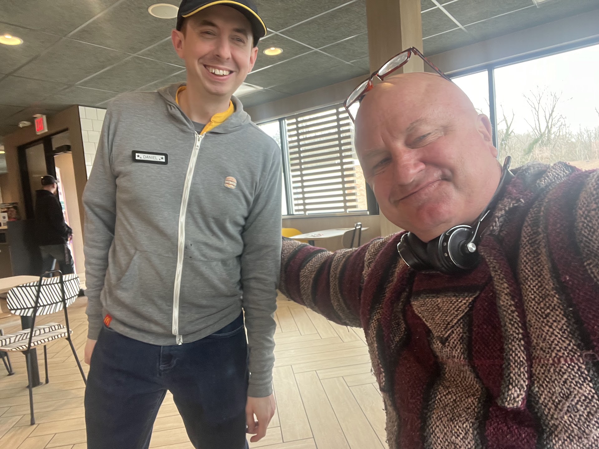 He mentioned his father in a great conversation. I had with him talking about how much better he's doing because he's lowered his carb intake. Bill is his name they want him to retire but he's driving on and trying to get better. Daniel always had a smile the whole time he was in the restaurant. I appreciate this type of attitude and what a pleasant experience and I would come back I'm a trucker just delivering plants up the street.