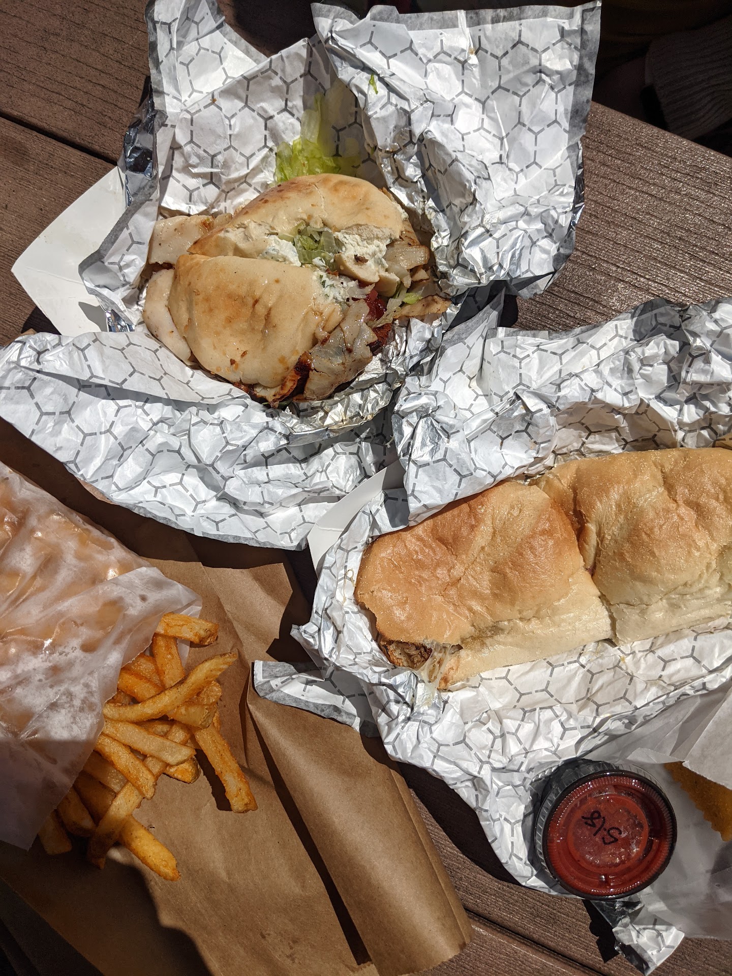 So then we had to open the bags up awkwardly so we can eat. She seemed upset that we wanted to dine in but our friend had a drink so she couldn't just leave.