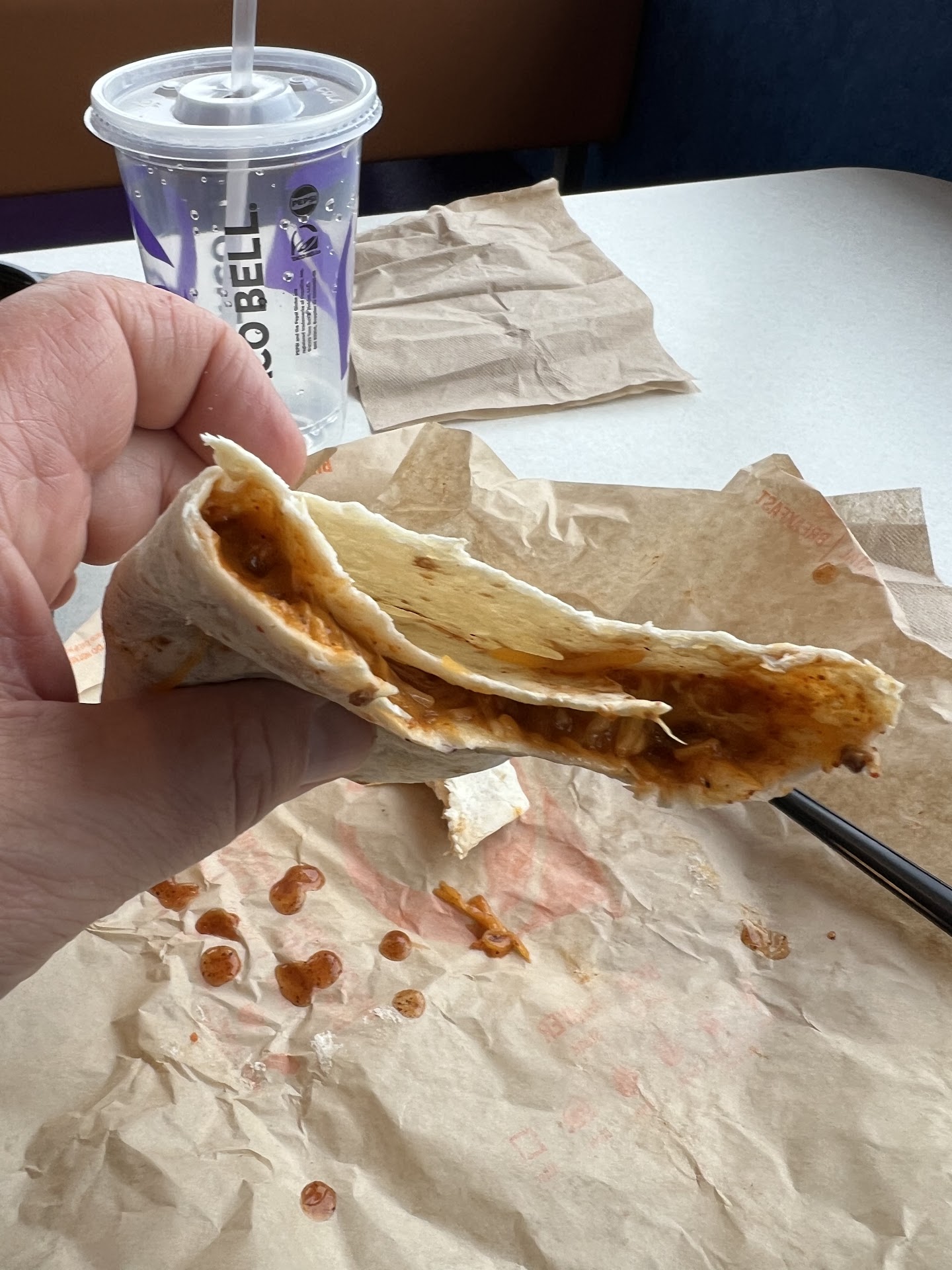 I ordered a crunchwrap supreme no tomato about a week ago on my lunchbreak. When I got it, there was only cheese and Lettuce. No meat, nothing else.