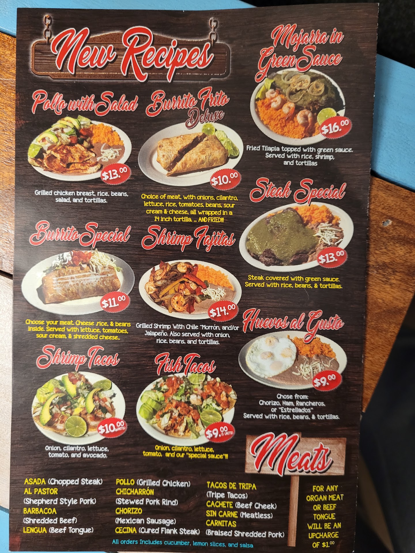 Read moreFirst time stopping in. I was impressed that they offered beef tongue streets style tacos and beef cheek street style tacos. Upon entering you grab a menu from the window and take a seat, once you decide your selection go back to the window and order take your seat and the servers brings your order, after eating go back to the window to pay. The downside of the tacos they were extremely greasy and served on a soft corn shell vs. a soft flour shell. The corn shell overpowered the taste of the entire dish. The street style taco was served with traditional diced onion, cilantro, and fresh lime on the side. The menu stated $9.00 for 3 street style tacos. However, when paying, you are upcharged $4.00 additionally for each taco because I had ordered the beef tongue and beef cheek (bate and switch). Nowhere does it say, nor are you informed of this before ordering. Be warned a small bottle of water is $4.00. Overall experience overpriced for greasy overpowering corn shell tacos flavor. I again I did appreciate the beef tongue and beef...
