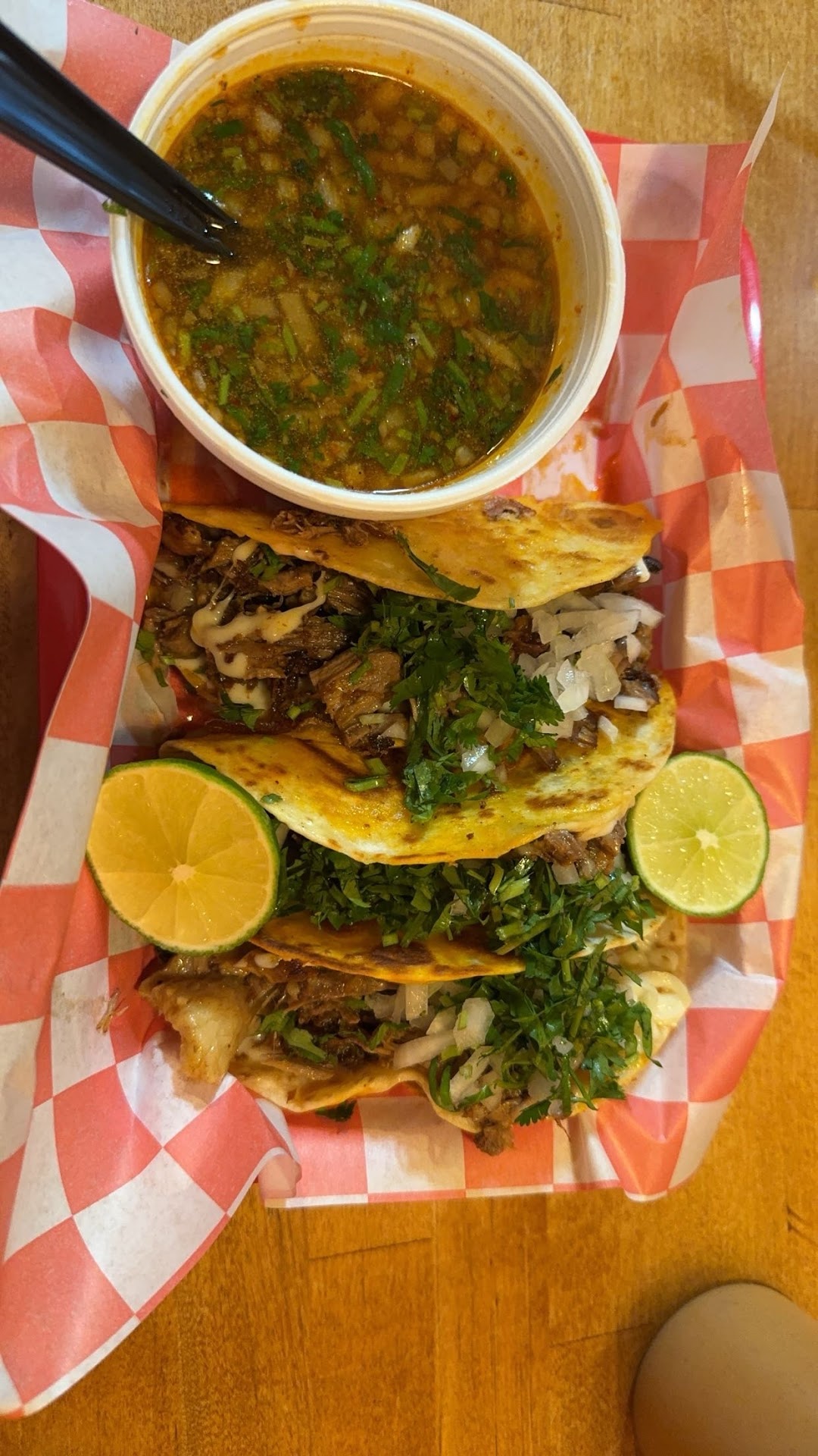 Ā Ā Ā Read moreFirst time stopping in. I was impressed that they offered beef tongue streets style tacos and beef cheek street style tacos. Upon entering you grab a menu from the window and take a seat, once you decide your selection go back to the window and order take your seat and the servers brings your order, after eating go back to the window to pay. The downside of the tacos they were extremely greasy and served on a soft corn shell vs. a soft flour shell. The corn shell overpowered the taste of the entire dish. The street style taco was served with traditional diced onion, cilantro, and fresh lime on the side. The menu stated $9.00 for 3 street style tacos. However, when paying, you are upcharged $4.00 additionally for each taco because I had ordered the beef tongue and beef cheek (bate and switch). Nowhere does it say, nor are you informed of this before ordering. Be warned a small bottle of water is $4.00. Overall experience overpriced for greasy overpowering corn shell tacos flavor. I again I did appreciate the beef tongue and beef...