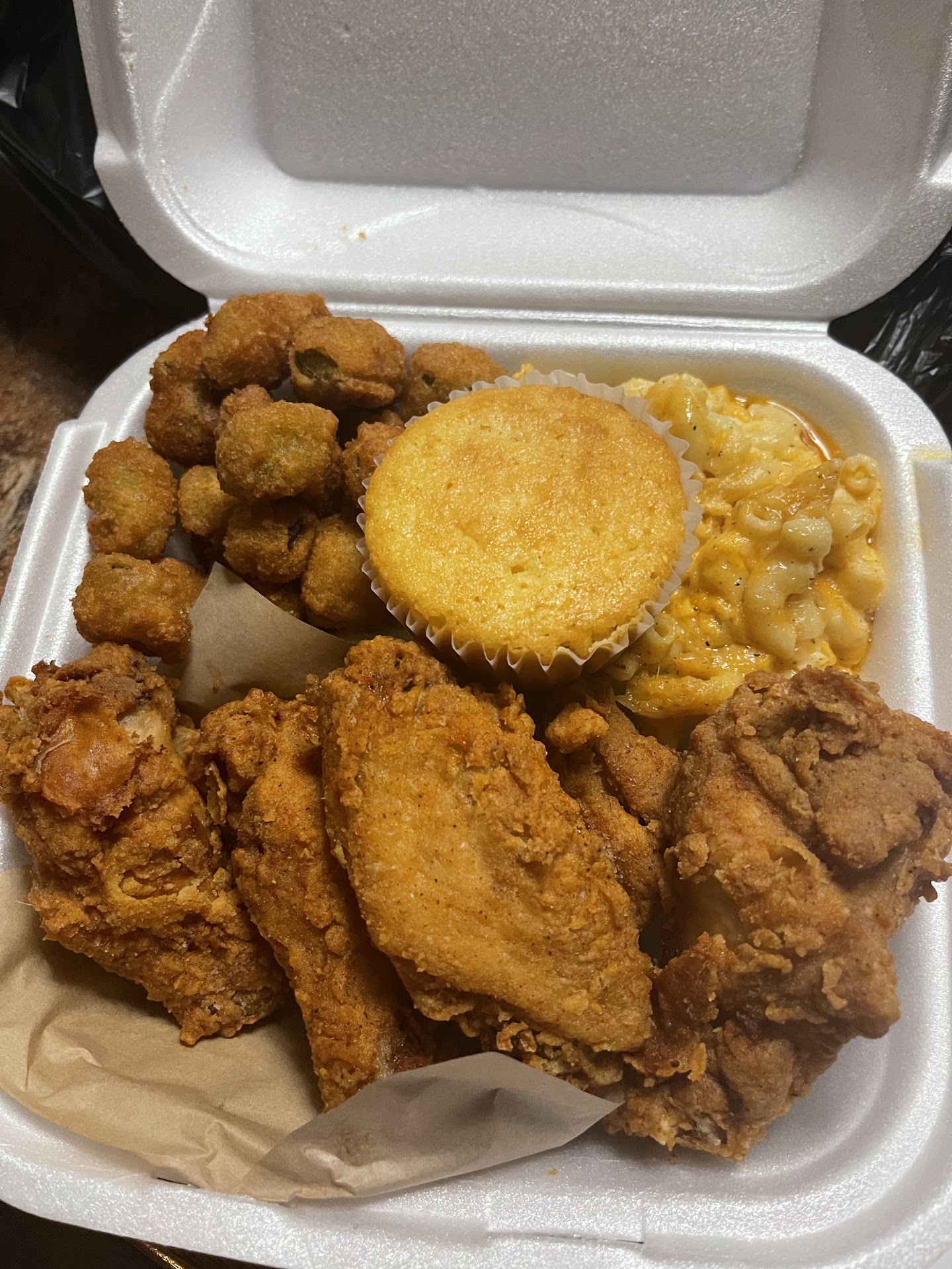 The convenience of them being open late night was cool, however spent too much money for the poor quality.. the catfish was really good but the greens that were served tasted like tons of salt was poured in them, couldn't eat them, Mac n chz was overcooked, and whiting was dry, decided to purchase dessert homemade pound cake so dry it crumbled like a cookie... It was about 8 of us and 6 out of 8 ppl didn't enjoy the food, we paid 56.00 for 3 meals and 3 slices of cake . To be hugely dissatisfied and left with bad taste in our mouths. We were all visiting from out of town, and I kid you not they have another one of these places being put in Toledo I wonder if it'll be same... Thanks for being open Akron location but no thanks we...