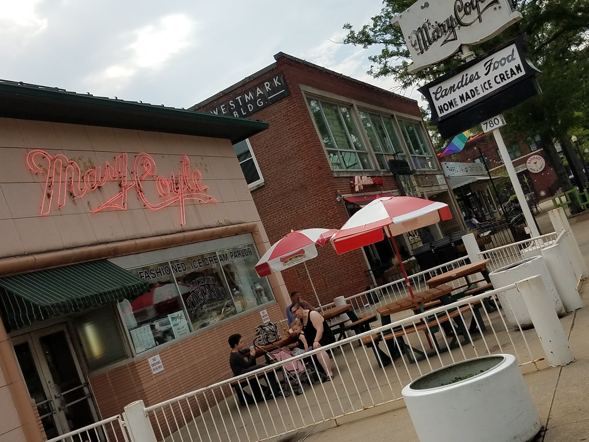 My opinion of this place very different then the rest the party I was with. Four others in my company got here. Multiple times a day every year during the founders day weekend in June . They just love it and can't say enough about it. With that said while I am not an expert on ice cream, myself and my wife eat ice cream every night and frequent ice cream parlors where every we are. We have ate ice cream at just about every stop along the NY state finger lakes " ice cream trail " and really enjoy Calhoun's ice cream in conawango valley and man many more. I have even put the mint chips in the the mint chip ice cream at and ice cream factory in Westfield NY while working there as a temp for a couple days when I was younger. My point is that while I don't technically know anything about good ice cream I eat a lot of ice cream . So here we go I ordered a hot fudge Sunday with whipped topping and a coffee from an older male with what appeared to be a chef's hat on? I was told that they don't have whipped topping . That it was not good for me. Maybe there right I don't know , but I sure do like it. Is ice cream and hot fudge good for me? They also said we don't serve coffee the place a few doors up does, you can get it there. Ok maybe they just do one thing and do it well. I ordered my ice cream and walked a few doors up, and found a wonderful artsy like coffee shop that sold their own desert. Luckily my friends were all back at the ice cream place , oh and I had already paid for my ice cream . When I got back and picked up my ice cream I was happy to find that they had put it back in the freezer until I arrived. That was nice of them. Now as far as eating the ice cream goes. It was ok. The first thing I noticed was that strangely it seemed dry? As in not creamy . Idoknow? As I sat in 85 degrees weather it didn't seem to melt(at all) ? I thought that was strange and maybe I was expecting too much with it being talked up the way it was but when I say it was ok, I mean it was just ok. I have had ice cream that when I ate it I immediately thought......this is great ice cream. This was more of a huh? It was just about then that I noticed the multiple no dogs signs. Some people might like this ,but I enjoy other people's dogs and I think it would be nice to take the dog for a walk to get ice cream and sit out on the patio. I believe they have been there a long time so it must be good ice cream to some folks, but I will opt for the every day ice cream stand with a kid making minimum wage serving melted ice cream with whipped topping and a hot coffee the next time I'm in Akron Ohio. Or just any other place that has toppings that I want not...