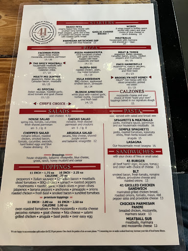 Read moreMy husband and I were seated by the hostess promptly and professionally, then we waited for a waitress for what seemed like a very long time due to the unpleasant environment. We had to listen to an employee, Krista, trash the hostess staff and wait staff the entire time we waited. By the time our order arrived at our table we were so disgusted with having to witness Krista being so rude, selfish, inconsiderate and unprofessional we couldn't enjoy our food. I left feeling so bad for the hostess and wait staff to have been treated so badly. The wait staff and hostess staff professionally and politely hustled the busy crowd, that is the only positive thing I can say about area 41 pizza in Mt. Laurel. VERY...
