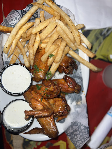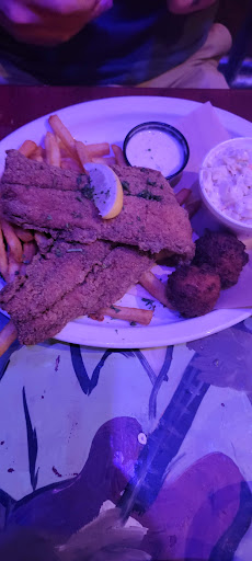 We had a very large group , about 25. First I'll start off by saying our waitress was great, she came back to the table twice to ask if we were ready to order and I initially thought it was going to turn into her trying to rush asking but after the second time she just told us to let her know when we were ready. Getting our order proved to be a bit hectic which is a little expected with a large group , they short of auctioned our food off until whoever ordered heard their order. A better tactic might have been to write the table number on the ticket. I suppose it was a cook that came out to help her auction the food off and he didn't bother hiding how annoyed he was. They ramble we sat at had a HUGE imbalance but by the time we got there there were no other tables to exchange with. As much as they charge for food youd think they could afford to take one small table away, also theres no way who ever lines our tables up didnt know, you barely brushed it and it would almost tip over in either direction, another guest spilled his drink and I splashed mine on my partner n me like twice just trying to eat with out rocking. The food was OK...the lemon pepper wings were whole wings cooked perfectly, the blue cheese was good tastes house made, the mac and cheese was ridiculously disappointing, it tasted like box mac and over priced for the portion and quality, the pulled pork tasted dry and not enough sauce to taste better, the fries tasted over cooked , the catfish nuggets were good. The bathroom was clean. The "free entertainment " was great, a band played and covered some wel known songs. The entertainment you pay a cover charge for was OK . she seemed to get better as the night went on. I really didnt like the policy on minimum purchase. We had to spend a minimum of 25 but drinks didnt count? Idk maybe something to do about tax on liquor but I'm not a business owner idk I just know I mainly didnt like it cause the food didnt match the prices and the drinks were SO watered down and over priced we should have just gotten a fountain drink . I dont drink a lot so it usually only takes a glass of wine or a shot and a half for me to know alcohol is in the drink but when I say Nothing was in that glass. All in all I wouldn't revisit, not a horrible experience but not worth the money or...