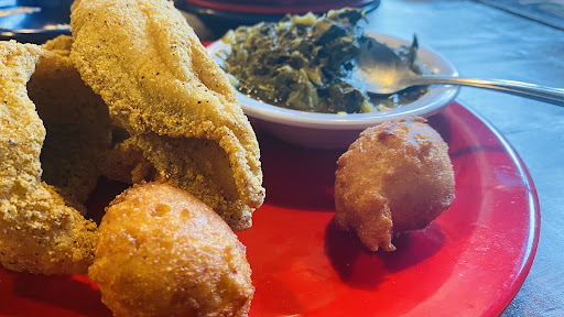 My wife and I went there shortly after it opened a few years ago. It was late afternoon, and the biggest part of the lunch rush was over. The catfish served to us had been refried, and was completely soaked in grease, and hard and overcooked near the tail end of the filets.