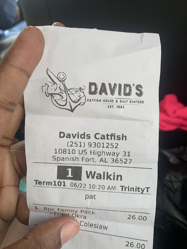 Read moreI kinda hate leaving a bad review so long after my one and only visit to the Spanish Fort location. I've been to the David's Catfish location in Atmore several times, and I've always been pleased with the food and service there.