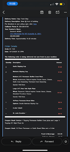Read moreOk I'll try again, the Winchester store was once my favorite and go to store, no longer I've been a customer here for a long time well over 25 years. Never a complaint until now. I've been treated well but I've known most of the staff having worked for dominos for over 10 years 5 in this store This store has gone way down hill. You can't place an order by phone. I've been inside and watched the phone ring off the hook Part of my last order was a stuffed cheesy bread Bacon jalapeño Hold the jalapeños it came with out bacon 2d time ordered first time was perfect It was evening I just got in from the VA Hospital on birmingham a 2 hour plus trip ( thurs.) was very tired, got home just wanted a bite and to go to bed Very disappointed Called the next morning at opening was told there's nothing they could do I should have called last night That is BS I wasn't looking for a cash refund andade that clear... Well that's it... This seems in direct violation of dominos satis faction guaranteed policy I talked to the store manager the next day. Was told the same thing Rude and confrontational. I've never had a complaint before I did mention on other orders I couldn't get through on the phone Ordering in the store carry out will take 30 minutes at least Order for delivery over an hour. This is the only store I've had this issue with Others when getting for my daughters have been ok It seems I was intentionally being driven away Changes need to be made to the management staff. I will not likely ever go inside this store ever again Losing a loyal Long term customer over a cheesy bread is bad business Especially a first time compl ain't 30 years. Fortunately there us a PJ'S a block down the road and a hut a mile away I might...