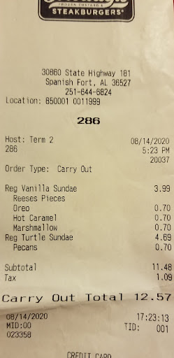 The food was decent. Those onion rings are really good. My daughters liked their food which was French fries, onion rings, and chicken tenders. We then opted to get some frozen custard (ice cream to them). Both got sundaes with chocolate custard, one plain and one with M&M's. I'm glad I got mini sizes because that was plenty. I also go a mini concrete with vanilla custard with peanut butter and reeses mix in. I was pleased with it. I would say it is around 8 oz. So good size for a mini. Oh, I got the Jalapenos Cheeseburger with french fries, and it was decent. I tried the jalapeño French fry sauce and it was decent.