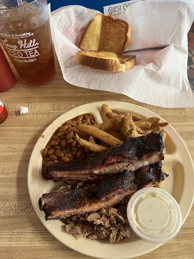 Read moreThe only thing I could fault here was the service and the waitress just seemed young, inexperienced and aloof. The food was amazing (and I hate barbeque). The ribs were fall off the bone tender without being mush and just the right amount of natural smoke. The sauce wasn't great, but that's one of my least favorite things about barbeque so I'll leave it alone it's different for everyone. The signs inside the place we're cute and sparked debate at the table. The other, more frequent clientele, struck up a conversation and everyone seemed very polite and friendly (which was also the overall feeling I got from the entire city of Selma, not sure if this is considered Selma, but that's the closest city I could think of). Overall, not a terrible dining experience. The one thing that REALLY bugs me is that because the waitress was not mediocre, she didn't try to upsell desert and I completely forgot about the tantalizing sounding caramelized banana pudding! I wanted to try...