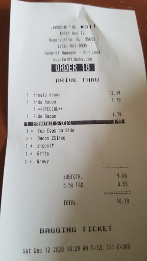 Ā Ā Ā Read moreWell I've been here several times before through the drive through & it hasn't been bad but today my husband & I chose to go inside to eat. We placed our order & when my husband brought it to our table my burger was wrong. I went up there & told her I got the wrong burger & she said that I had ordered that number. I told her no I had ordered the number 2. She had a bad attitude about it & she slung that burger in the trash & told the lady making burgers she needed a bacon burger. Then, she precedes to turn her back & talk about me to this lady. I could hear her. I said if this was the way it was going to be I WONT BE BACK!!!! What ever happened to not arguing with the customers? I won't be recommending this Jack's to anyone & I...