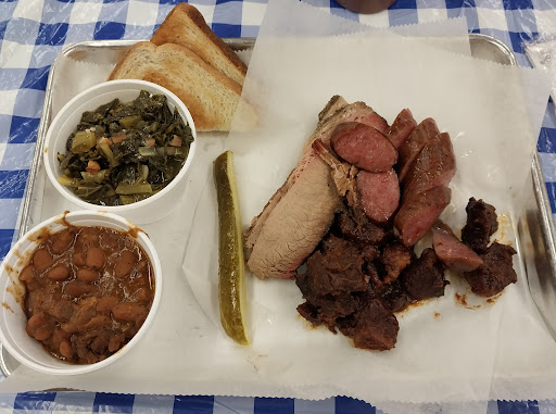 Read moreFirst time in Kar's Char today. The gentlemen behind the counter, who I assume were the owners, were quite pleasant and professional. Ordered the meat sampler with brisket, sausage and burnt ends and collards and pinto beans for my sides. Comes served on a cookie sheet with toast and a dill spear. Let me begin by stating that Texas-style BBQ is not my forte so I cannot judge "authenticity", only how this food suited my palate and preferences. Just because something isn't to my particular taste, or I prefer others' food, doesn't make it "bad". That being said, the sausage was my favorite of the meats. It was mild and flavorful, not too smoky or overcooked. Very tasty! The brisket was juicy and tender, but lacking in seasoning & smoke. I tend to prefer a smoky, more heavily seasoned brisket. It did pair well with the sauce on the table. The burnt ends were not my thing. I believe them to be simmered in a thick sauce. I prefer them to be naturally caramelized during the cooking process. The collards were well seasoned and did well with a splash of the pepper vinegar on the table. The pinto beans struck me as chili style beans. They were hot and tasty. I will add that I do not believe that their meats are smoked on site. I'm pretty sure that they prepare their meats elsewhere and then reheat them to order. Not all of my meat was particularly hot or seemed like it was just prepared. I also felt like I spent a little more than I would have liked, right at $34 with tip. However, I got full and didn't leave anything...