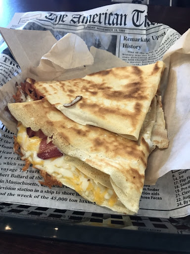 Pofta Buna serves up sweet and savory crepes in the spot that used to house Happy Tummy in Lowe Mill. They also have other offerings, mainly in the form of specials - different salad, shaorma, etc. We tried out the Transylvania crepe without tomatoes. Bacon, cheddar and mozzarella cheese, and garlic! The crepe was delightfully crispy. You should probably eat it with your hands - splitting it with a fork and knife was a bit of a challenge. Bacon was crispy, cheese was gooey, and garlic was not overpowering. We also had a sweet crepe with Nutella, bananas, and walnuts. I really liked the added crunch of the walnuts. I wish we could have had some fresh whipped cream with it though, that would have made it perfection. A short wait for food seems pretty likely, and some things are perhaps a little pricy...but the ingredients are high quality and the food freshly prepared, and you're also eating at the always trendy Lowe Mill. I want to come back and try some different crepes as well as their...