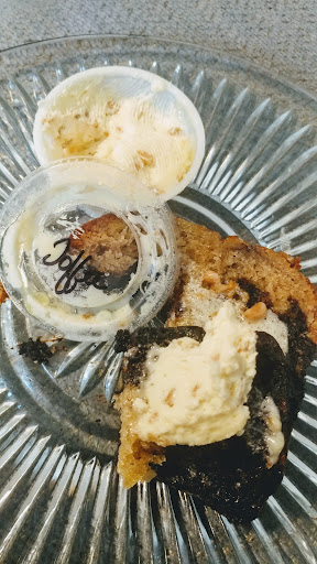 Let's go ahead and jump into this Banana bread and Toffee butter. WOW!! Yes, the warm banana bread was great. It was moist, delicious, full of flavor, incredible!! But let me tell you about this Toffee butter, it was so light with little bits of toffee in the butter. I carefully, with reservation, spread a small amount atop this incredible slice of banana bread. The first bite, what the what!!! I decided to go for it. Grabbed the knife and did what I know you would do, scooped, yes scooped, a dollop of butter onto the bread and leap to my feet in a happy dance. The butter paired with the bread will make you want to take a step back or let's say a step towards the butter to spread more on top of that bread. Yummy!!