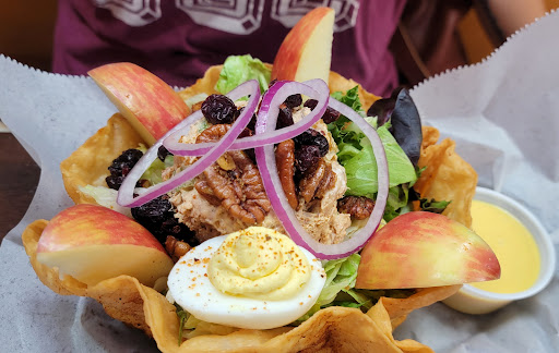 The wife ordered the chicken salad (which had a large portion size and she raved over the taste), I got the 'Huntsvillian', which is a burger loaded down with fried jalapeños, spicy pepper jack and 'sweet heat pepper jelly' which usually isn't my jam (pardon the pun :V) but was delicious. Kids got kids' meals, and the chicken and fries were very good (chicken was moist) and the kids mac-n-cheese was exceptional.