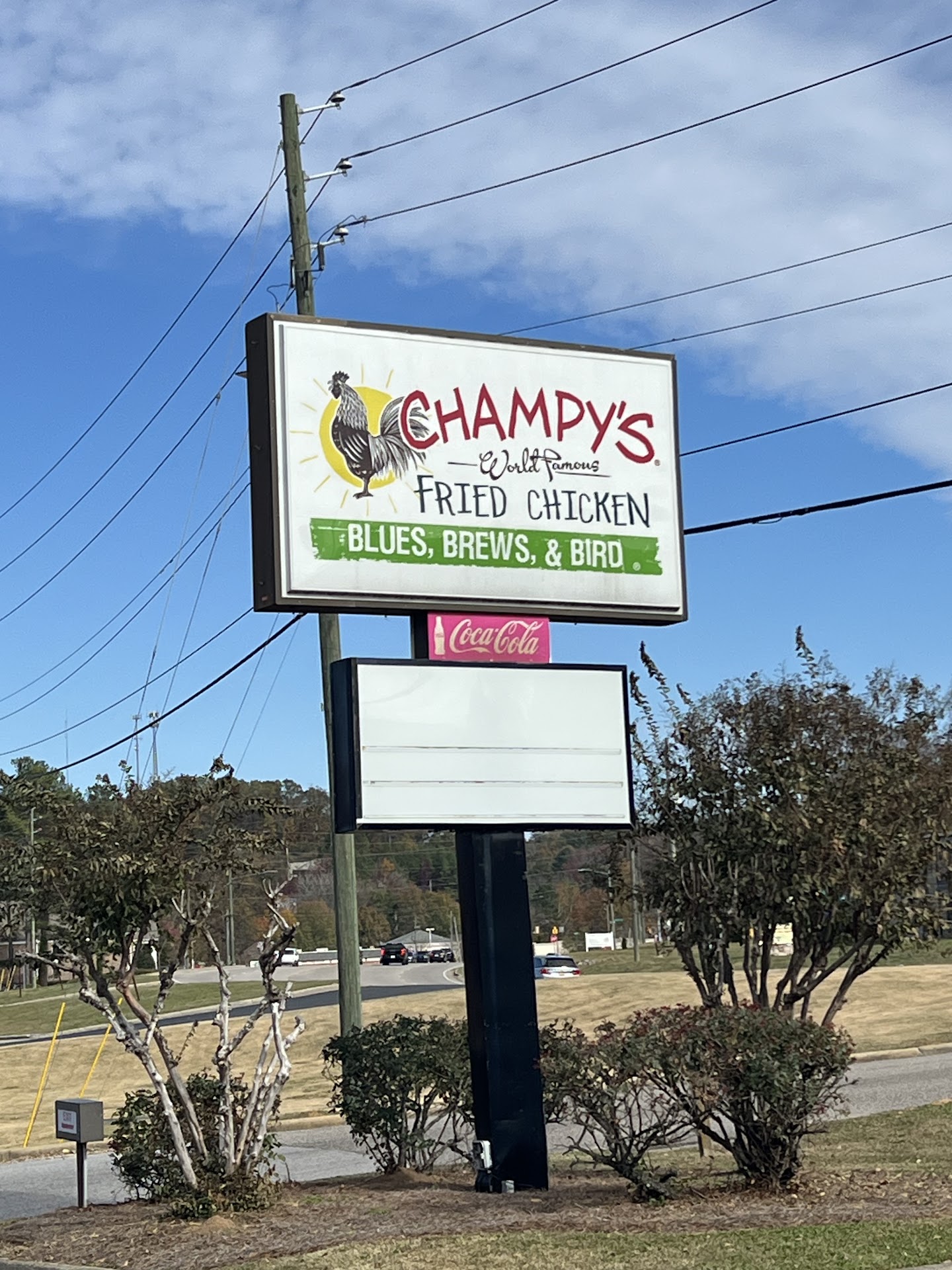 It's a shame Champy's is located where it is in because given another more visible, trafficked location its business would probably just explode. It'd been forever since I'd been back to Champy's, first after thinking my wife and I were trying a local place and stopping there while visiting Chattanooga, and then next after discovering it in Alabaster shortly following that TN trip. We thought the food was great in both locations at that time, and I guess the only reason we never really got back there is due to my not being the recurring fried chicken eater. But we finally made it into Champy's again recently after such a long time, and I'm happy to say that the food is just as delicious as I remember. The chicken itself is cooked-to-order so there's a bit of a delay between ordering and chowing down, but it's not unreasonable and is totally worth it. Once the wait's done, good ol' yardbird comes out piping hot and as crispy as the doctored fried chicken fast food chain commercials show on TV. :) Fantastic flavor, hearty pieces, and excellent sides (baked beans and mashed potatoes - boom) are the name of the game at that point, and good luck if you can handle any dessert afterwards.