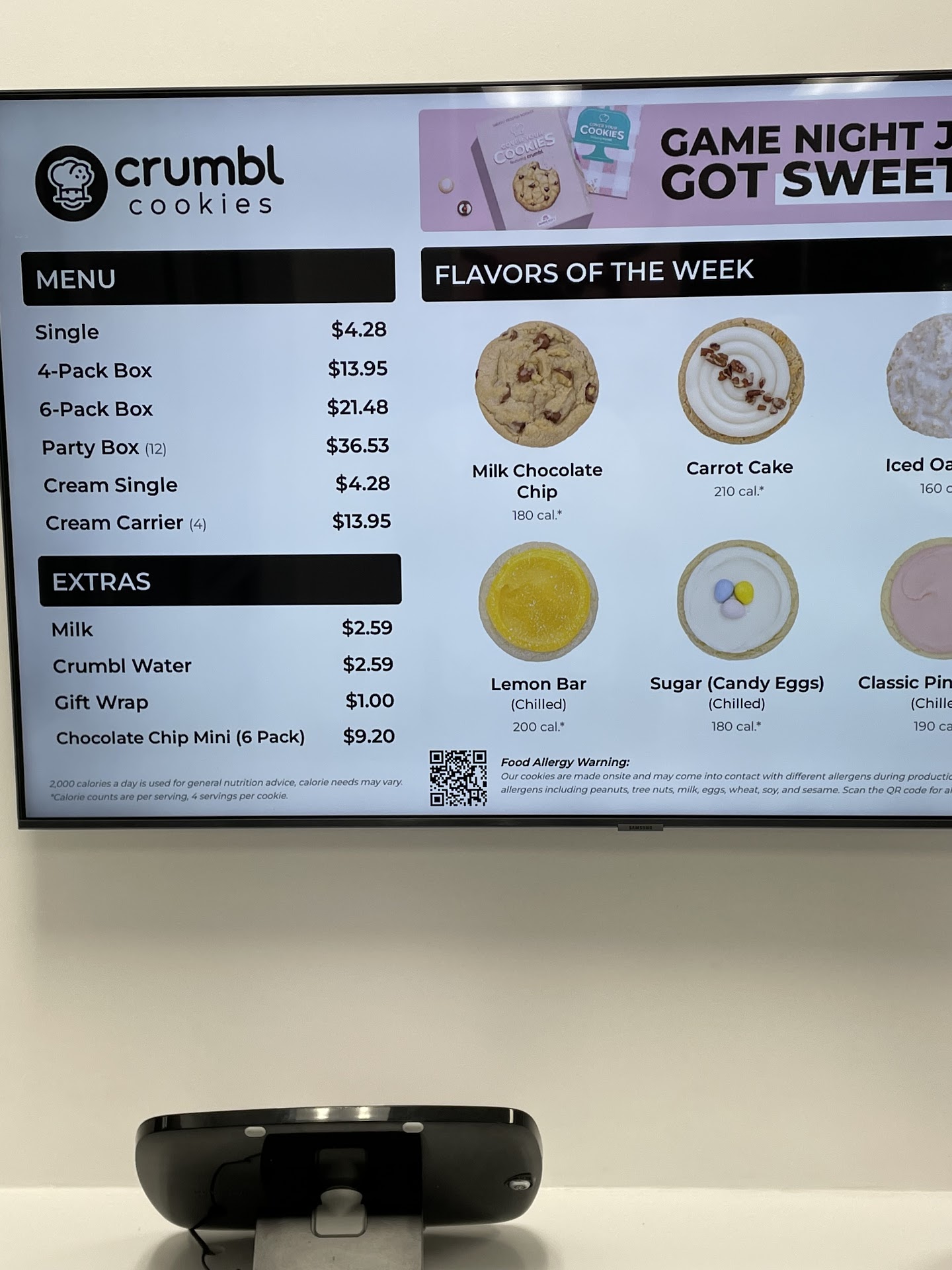 Read moreVisited Crumbl for the first time, today. Wanted to see what the hype was about â but Iâll never be back. My sister tried to place two orders for the âChocolate Chip Mini (6 pack)â for us to take to the local Fire Station. The young lady behind the register told us that we couldnât order mini cookies unless we placed a catering order, days in advance. We told her that we were confused because it was clearly on their menu, under âextras.â (Pictures below). A man beside her, counting the drawer money, hopped in the conversation and snapped at us. âLike she said, you canât order those unless you order catering days in advance. We donât have the ability to make those last minute. The menu is glitching, I guess.â Never made eye contact and his tone was BEYOND rude. We wonât be back. Not because we wanted mini cookies that badly, in fact, I still ordered full-size cookies⊠but being snapped at when we were genuinely confused was...
