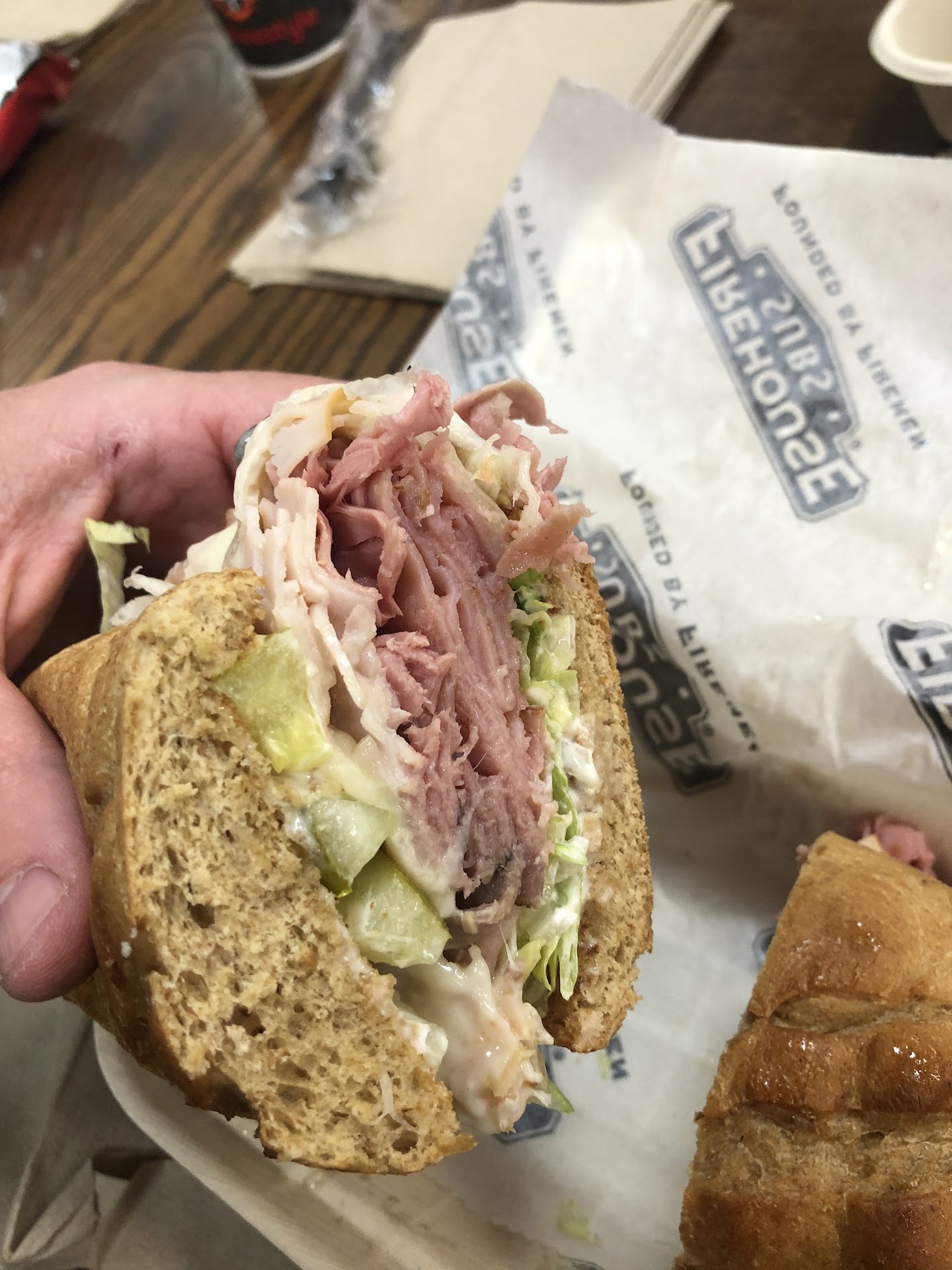 Read moreI have been ordering the NY Steamer sandwich fom firehouse for years. For good reason. Its been a very good sandwich. But something has changed over the past year. Of the hundreds of pastrami/corned beef sandwiches I have eaten over the past 30+ years from all kinds of restaurants, i have NEVER had one wirh so much fat. Tonight makes 3 times in a row of me visiting firehouse and finding a minimum of 50% fat on the sandwich. Open it up and there's a small pile of normal meat w very little fat that is about 25% of the total meat and then underneath it is the bulk of the rest of meat which is long thin slices of mostly fat. Gross. I can't really blame this location bc none of the other sandwiches seem to have this problem. And the employees are always nice and do their jobs well. But the food quality has taken a nose dive in different places and it makes me think it's a top-down chain decision to save money. I may go back, but I'll probably never order this sandwich again. I also tagged the atmosphere poorly. That's bc its ALWAYS smoky inside. Not steam from the steamer. There's a thick visible haze of smoke in the restaurant every time we've gone there. Every. Time. For years... not sure why there's no ventilation for the griddle, but it's not as much fun to dine-in when you're eyes are burning like you're sitting too close to an...