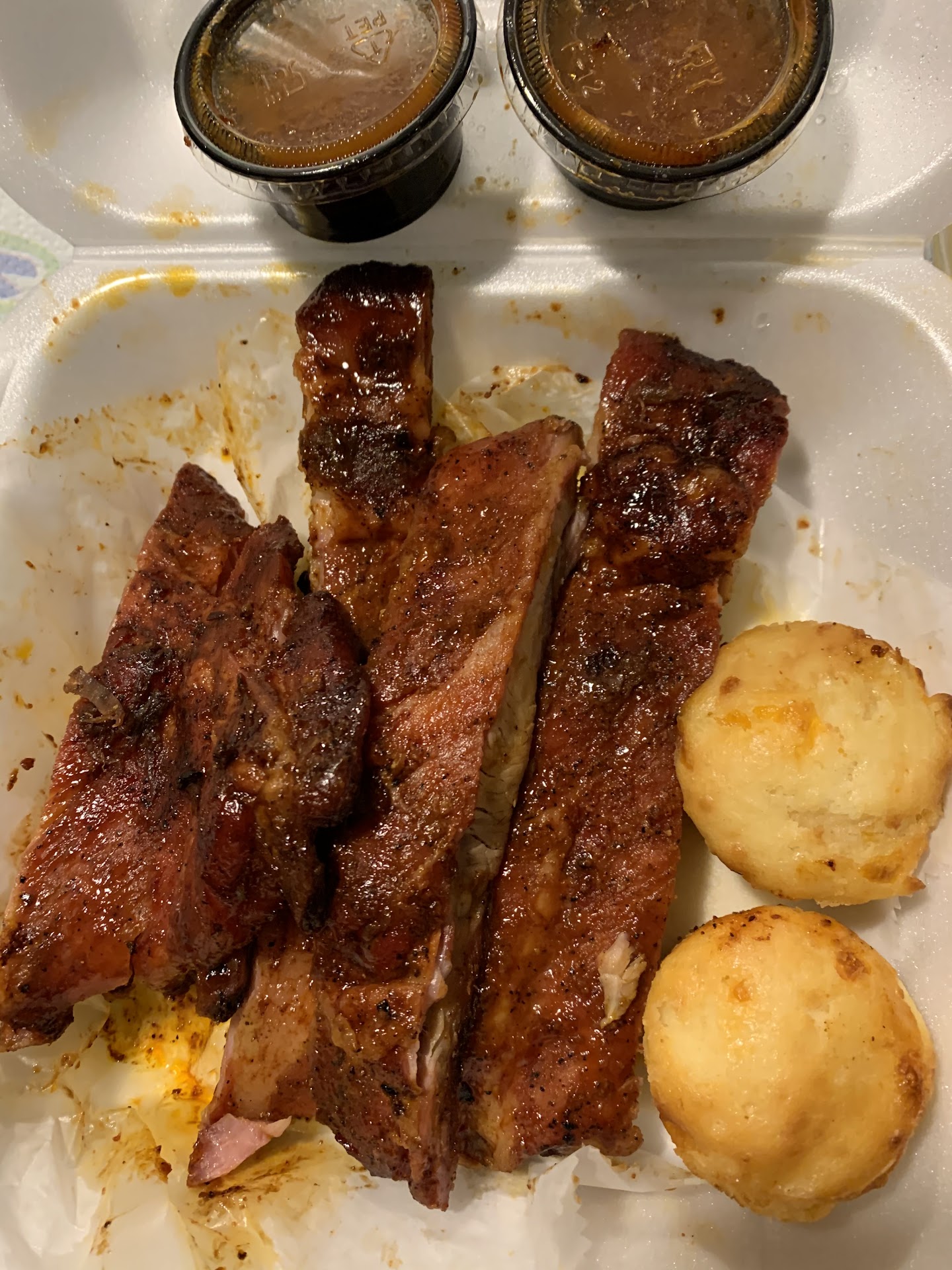 However, the ribs were seasoned down to the BONES. I was so surprised 😮 and very happy. They were delicious and I wished I had more. But, I give them 4 stars ⭐️ only because they didn’t give me as many bones as the other location.
