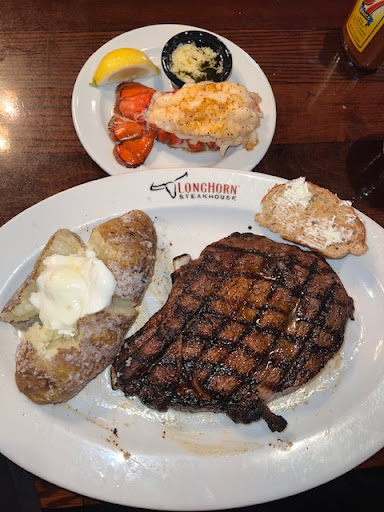 Read moreI really wanted to give them more stars but I have to be honest. 7:15 pm on a sunday : waited 15 mins to be seated after seeing multiple tables open. No problem.... I assume short of staff Understandable. I was seated. I won't say the young lady name because she was really friendly and sweet but I feel like she was also overwhelmed with the 8 guest sitting next to me although I was alone And already knew what I wanted. I order a lemon drop, lobster and steak side of shrimp and sub the rice for esparagus and a loaded potato with no sour cream. Instead rice came out anyway. I had to ask for water and remind her about the lemon drop plus there was sourcream on my potatoe. I waited about 30 mins for the food which was semi cold. Overall the food was a 6 out of 10. flavoraful but definitely cold which is why its a 6, the potatoe was super dry, very dry although it was supposed to be loaded.... o service was 5/10. I ate at Texas rd house last weekend and it was amazing so I was like well... let me try long horn because of the surf and turf. I love the combination of meals but they definitely lacking timing on food cook especially being a steak house and possibly short staff. I ain't mad though, just disappointed. I just know I won't be back Here. Based on the service and food.... ijs. Price was pretty decent.... so again... I just wish my food was hot. I'm not the one to complain because at the end of the day it takes team work..... I don't know what happen between the cook and waitress but they missed the mark. I will say when I ask for the check she came by my table about every 3 mins, at least 5 times while I write this review. She was more attentive getting my money than actually serving me...that also took away from the experience because I felt rushed. She took my plates and asked if I was finished.... Again. It was OK but I won't be back to this location. Maybe I'll try another location in the far future. Thanks, hope this helps ypu better...