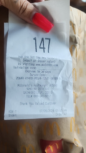 Ā Ā Ā Read moreI have never wanted to give a 0 but the manager (not the other only two employees) was absolutely horrible. I worked retail most my life and just would never treat people the way she did. We got here from out of town tried to go thru drive thru was told it was closed to come inside. I came inside where I was then told she could not place my order she had no register and no access to safe. I tried to explain I need someone to take order as I can't add sauce on the app. She rudely said just order and telle and I will add it. She was rude to every other customer that came in as I sat there on my app doing my order. After I placed order I had to say excuse me three times for her to acknowledge me. She was very cold and rude. While there a young lady asked for refill and he took the ladies cup the manager then yells at him rudely to never take customers cup to give a new or fill it from a new cup. I understand but she was also very mean to her employees... After getting my food (that was honestly amazing fresh fries and burgers mad as I asked form the two amazing employees) where I could only order 2 sweet and sour I asked if I could have two more. She said it $35 a piece... Real nice as you can't ring me up.. this new self serve where you can't get any help and such a rude women that clearly hated life and just need a hug or something but no way will I visit this McDonald's and if ever any other. I have thousands of points that that can have them. Not worth it if this is how they treat people. They could learn from scooters (same city Gainesville)as they go above and beyond for a customer and treat people with...