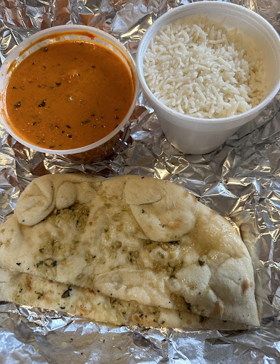 The Shrimp Korma does come with the shell still partially on the shrimp, so be careful. It is definitely spicy when you first start eating it but it calms down. The plain rice is very flavorful and itself. But it does not interfere with the Shrimp Korma taste.