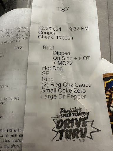 Ā Ā Ā Read moreI am giving 4 stars because of the noise level which is pretty disturbing. I will come back to that. OK folks, the place has only been open a week so I would expect some glitches. I had a Big Beef with Giardiniera . It is confusing because they write "hot Peppers" on the ticket. Giardiniera is the secret sauce to the Beef sandwich. It would be like ordering a big mac and having the sauce held off. You gotta have the Giardiniera. My Big Beef was very tasty and I brought home 1/2 and as a late snack, still tasty. The fries likewise very well done and tasty. The unsweet tea was a bit weak, needs to have more tea in the water! I told M'Lady that the menu had pasta. The on line menu does show it but she did not see any indications and got the Fish Sandwich and Onion Rings instead. She raved about the onion rings and no complaints on the sandwich. OK back to the noise level. It is acoustically fatiguing. When the new Townhouse in Oviedo opened up it was also very noisy and I complained and within a month they installed acoustic panels on the ceiling. Problem Solved. For Portillos, the situation is much worse doe to the size of the building and number of patrons. The store was 95% capacity, if not more when we visited 713PM 12/20. I doubt that even at 30% the noise level will be tolerable. I worry about the staff and Chef's who will hear this for 40 hours a week. The noise suppression must include the kitchen where sound proofing of the sinks and counters (sound mats under the steel) might reduce noise (and shouting) from the kitchen. Then the dining area needs sound suppression panels. There may be temporary solutions, but enlist an Accoustic Engineer. There is a woman in Oviedo who has the credentials and is on Linkedin. Otherwise I am looking forward to some Chicago Style Hot dogs and (unlike another commenter) will not mind if heavily slathered with mustard and relish. I do hope you have celery salt, please have celery salt. ...