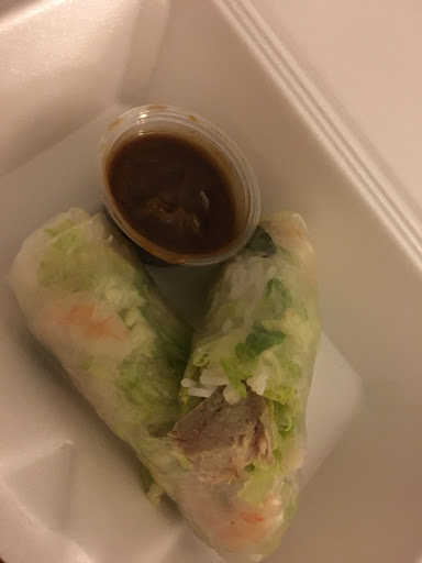 ā” Spring Rolls. 7/10! My boyfriend ordered some pork spring rolls to try, and he thought they were pretty good. The spring rolls were hot and crispy, and it was delicious dipped in the complimentary sauce.