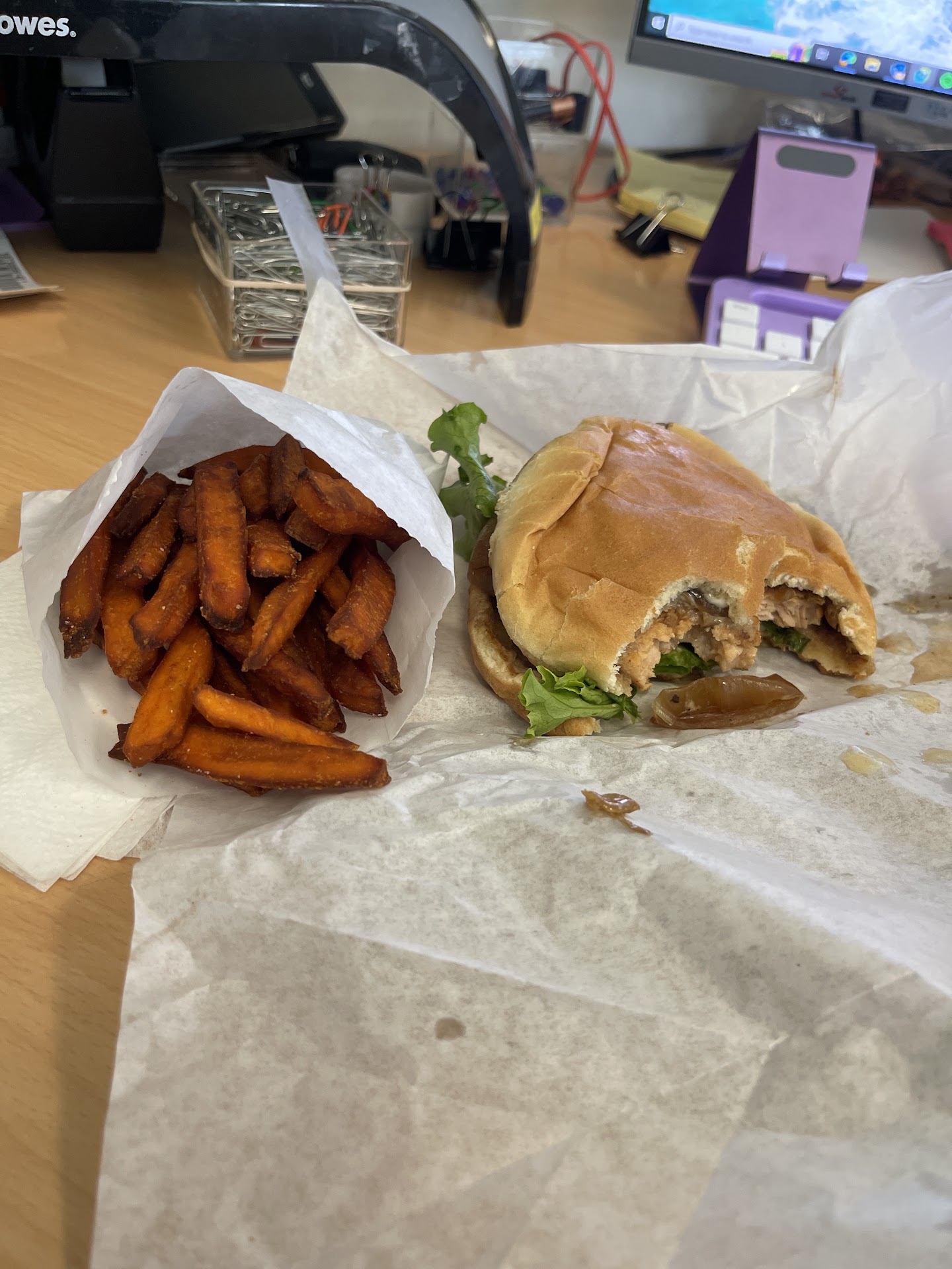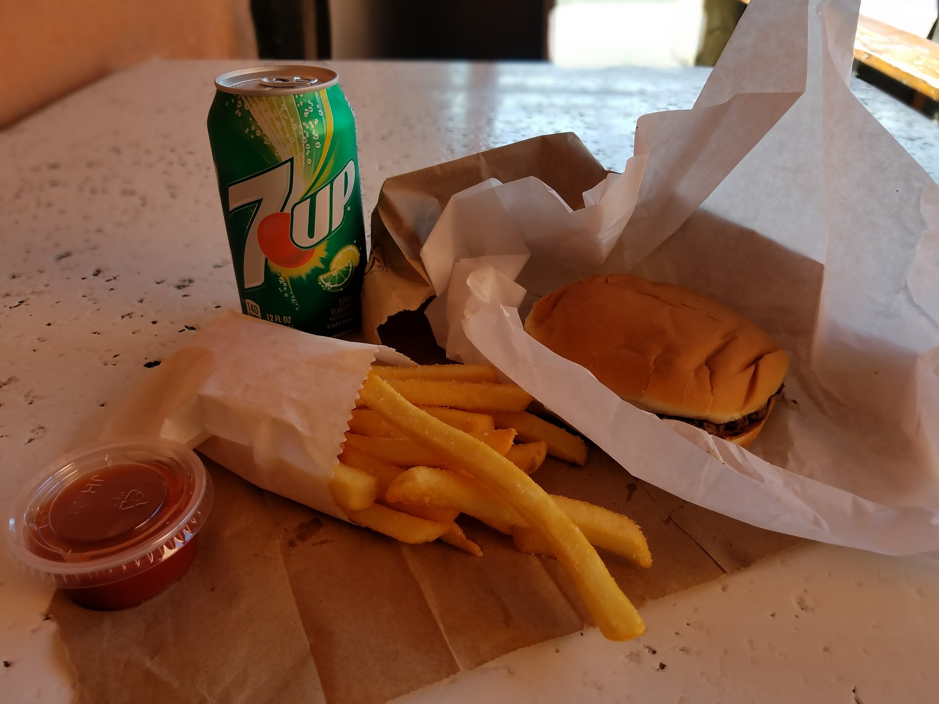 I ordered a cheese burger and curly fries with ranch dressing. Overall the meal was okay. The burger was classic but nothing stood out. The onion was sliced a little large with some film still on it. And either the ranch dressing or curly fries was a bit too salty.