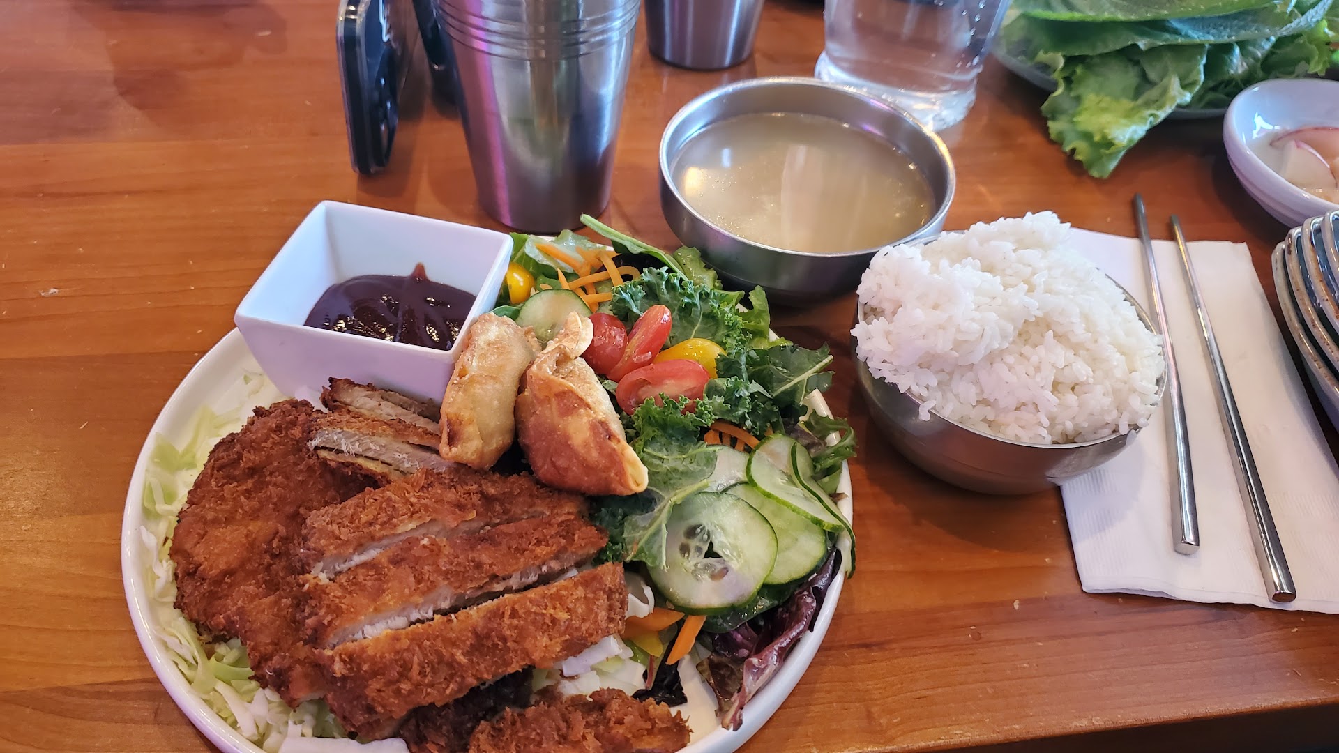 Read moreGood food! I will eat there again! They have a SWEET POTATO NOODLE SOUP! I have a feeling it will be my new go to. The service for me was slow & long. So much so that my potstickers were overcooked, & my food was cold! 3 folks ordered & received their food long before I did. Still didn't get my food till 15mins after them. I sat for an hr for a 15-20min meal. What the f...! Do it again & I won't give you any business & word of mouth will always be negative. I ordered a staple, chicken cutlets, mixed rice & beef potstickers. That took an hr! I have plenty food service experience. That was simply disregard for the customer....Me. Fix it for it was completely unnecessary. I didn't do anything to deserve that unsatisfactory service. I couldn't even eat inside while there were clearly others able to. He raised his hand to stop me before I got past the Maiter'd stand. While others were able to sit inside with a smile & directions to a seat of their choice AFTERWARDS. It was 40-50° F waiting for an hr just for MY FOOD ALONE mind you. I, You, We all know what that is. It needs to quit, everywhere. You're Human, I'm Human. That's it. Great food,...