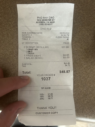 Read moreTo be totally honest, I believe the place has gone down hill. We were there for dinner, the place was practically deserted. Only two tables were occupied one on the Crawfish side, and one on the Pho side. We ordered the Cat fish and fries basket and a pound of shrimp. Which they forgot and didn't put on the order.