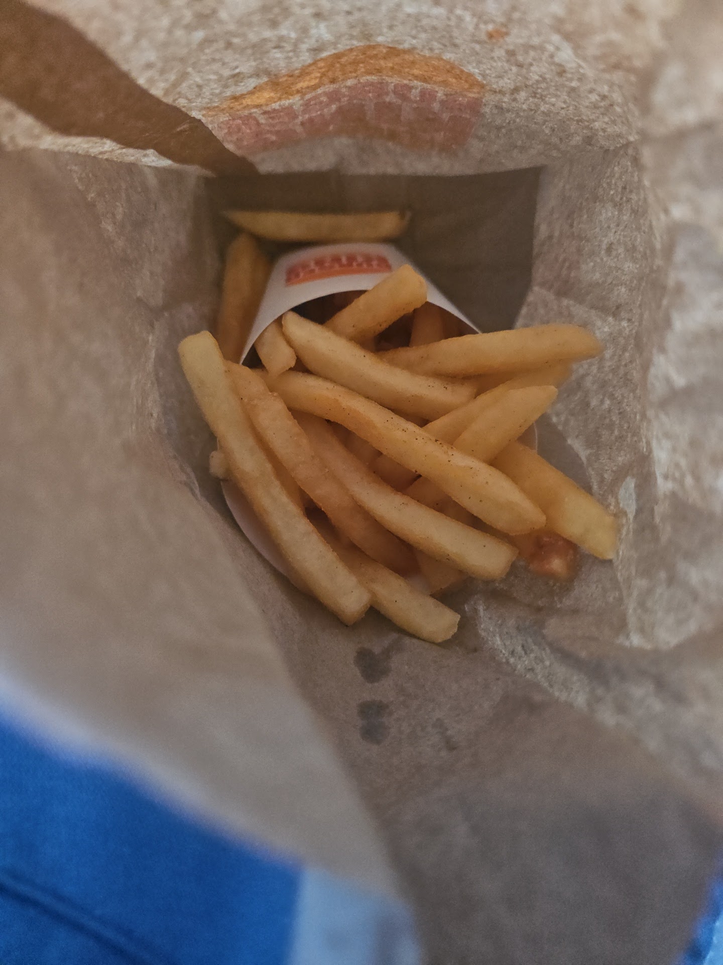 Last week, we went to driveway and didnāt get our fries that we ordered, so after arriving home we had to drive back to ask for the missing food, they were hesitant in admitting that they forgot while packaging. We let it go, because its happens given the way how fast employees have to work on chain fast food. Today, again we got two meals, reaffirmed with the cashier from driveway if the meals are all in the package, he says YES! And when i checked i saw onion rings and two fries and could feel burger too so we trusted that nothings missing. We come home and there isnāt the second burger?