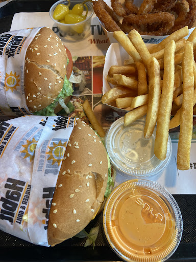 Read moreI know that In-and-out Burger is considered the pinnacle of California fast food culture but I like Habit Burger better. More choices (and all of them are good), less messy, not much of a wait, usually friendly service, and the one in Alameda is conveniently located in the Alameda Landing shopping center. I had a nice “Double Char” today and helped myself to some Jalapeños to give it a little kick. The restaurant and self service area are always clean which contributes to an overall pleasant experience And the palm trees reflecting in the entrance door (see picture) enhance the California feeling. Just waiting for The Beach Boys to show up
