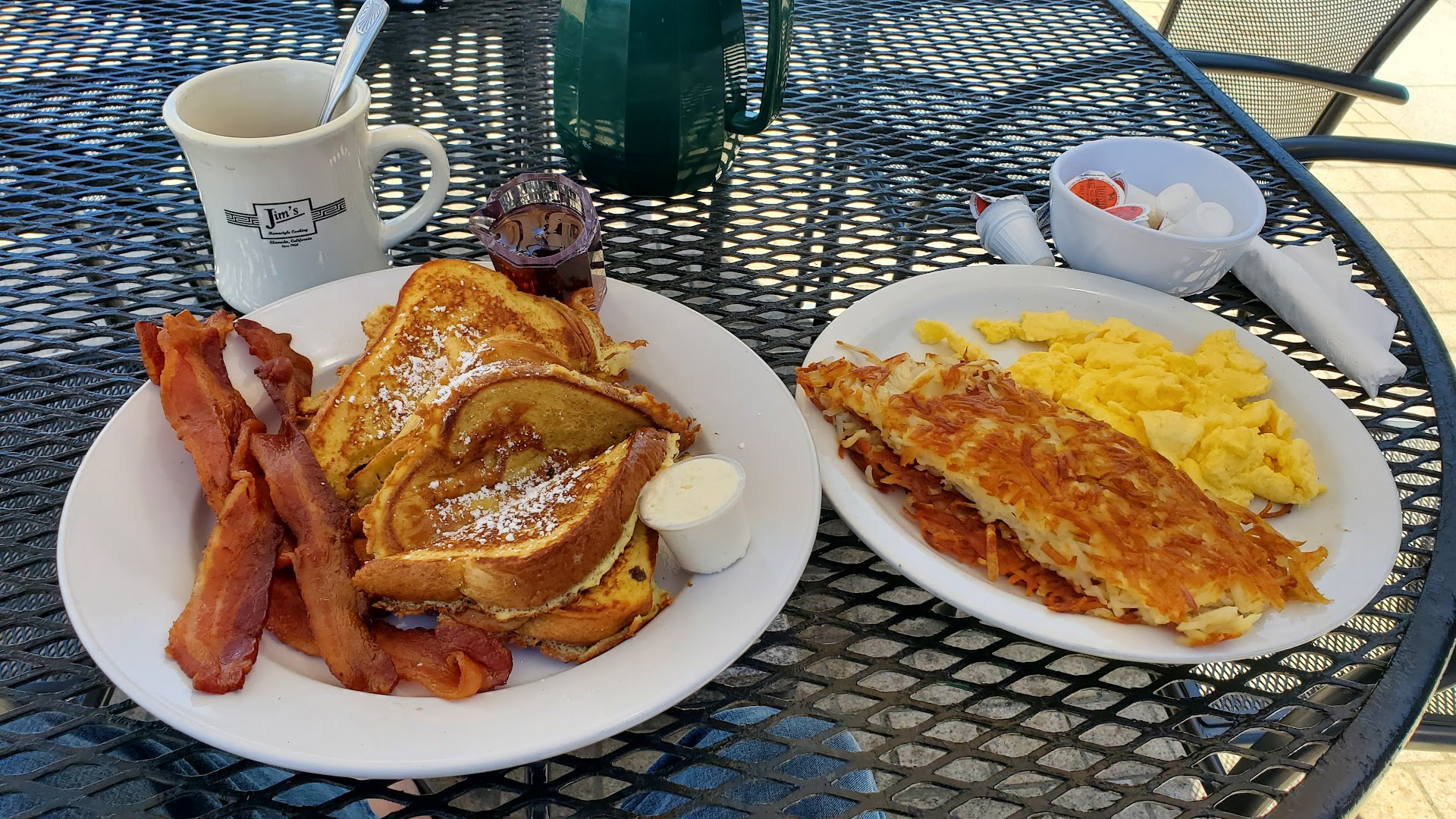 Since I wasn't feeling a traditional breakfast of eggs, bacon or sausage, hash brown, wheat toast, pancakes, waffles or French toast, I opted for Jim's Super Burrito. Choice of meat was beef, chicken or pork. Okay, one burrito with beef and the the listed fixings as indicated on the menu, please. It was okay, except it was a tad salty and lacked cilantro. I thought the beef would be carne asada; instead it was ground beef. Needless to say, I have better elsewhere.