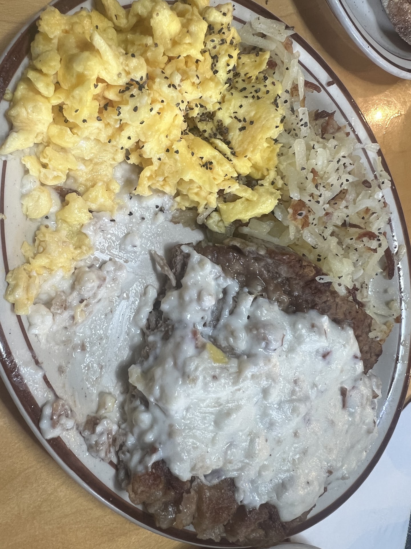 I’ve been coming here for years and it’s always been really good. On my last visit 4/26/25 I decided to change it up and try something different vs my normal breakfast. I tried the chicken fried steak breakfast and OMG it was NOT good and even the gravy could not save it. First off it don’t even have the seasoned golden fried chicken coating on it and it was absolutely BLAND and tough. If you are a chicken fried steak lover please don’t get this one until Oles change the product and get it right. Oles you gotta fix this ASAP. An orange juice was ordered and a cranberry juice was ordered and orange juice was in a tall glass as usual however the cranberry was in a much smaller cup. I know it’s two sizes for cranberry juice and it’s even two prices and sizes in the menu but on my bill I was charged for a large but that’s not what I had. I asked the nice waitress about it and said that was a large and I was like lol no way but ok. Just an FYI the glass the orange juice come in is a large but she did adjust the price because she really knew I had a small. I’ve been coming here since 1999 and I will continue. The best part about this visit was we got to sit Nextdoor in the Wine and Waffles area which I...