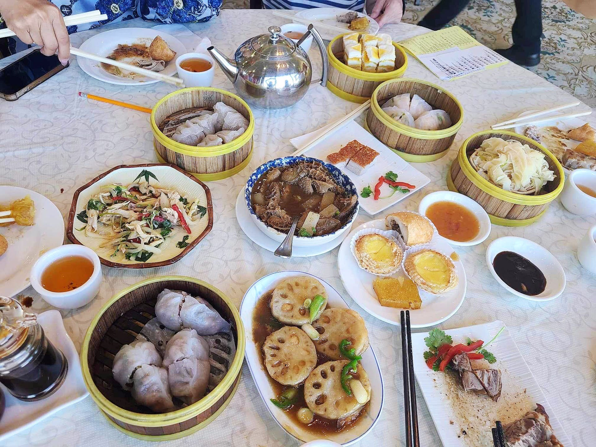 The food selection was great. The servers come by with dim sum dish options. The dishes were big and plentiful. I got to choose what I want to eat... as opposed to some Dim Sum places nowadays where I just order from a menu. There is also a menu and I used that to order the veggies I didn't see available with the servers.