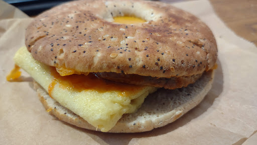 Read moreA pretty nice Peet’s! (Ethical rating: 3.5 Green Stars) This Peet’s Coffee in the West end of Alameda is pleasant for various reasons: There’s usually lots of space, including outdoor seating with leafy shade; staff members are friendly; the music is not too loud; and it’s clean, with clean restrooms too. Peet’s had gradually improved when it comes to plant-based offerings. There’s the vegan “Everything Plant-Based Sandwich” (an Impossible sausage patty combined with vegan egg and cheddar on a thin bagel) which isn’t bad when combined with hot sauce. Unfortunately they did away with the other (better) vegan savory offering last year – the Mediterranean flatbread – so it would be nice to see something to replace it. On the sweet side, the morning glory muffin is vegan and also happens to be one of the best things in the pastry case. And thanks in large part to a campaign supported by Paul McCartney, there’s now no extra charge for plant-based milks!
