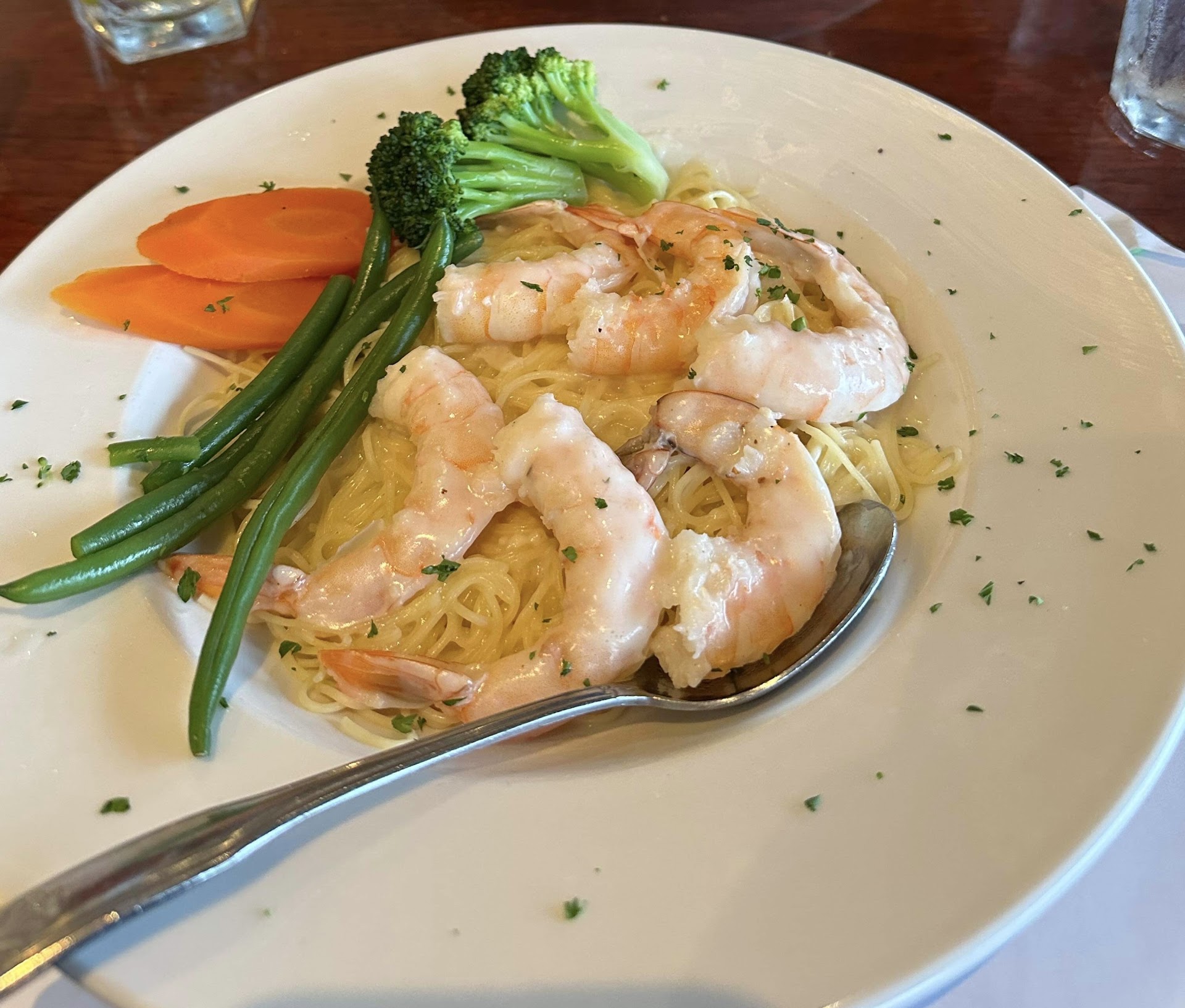 My disappointment could only be assuaged by the much-awaited shrimp scampi, right? But alas, the scampi turned out to be more 'scam' than pi. These shrimp had seen about as much seasoning as we saw of the ocean. Each bite was an arduous journey through a barren desert of blandness, prompting the question: where did all the flavor scampi off to?