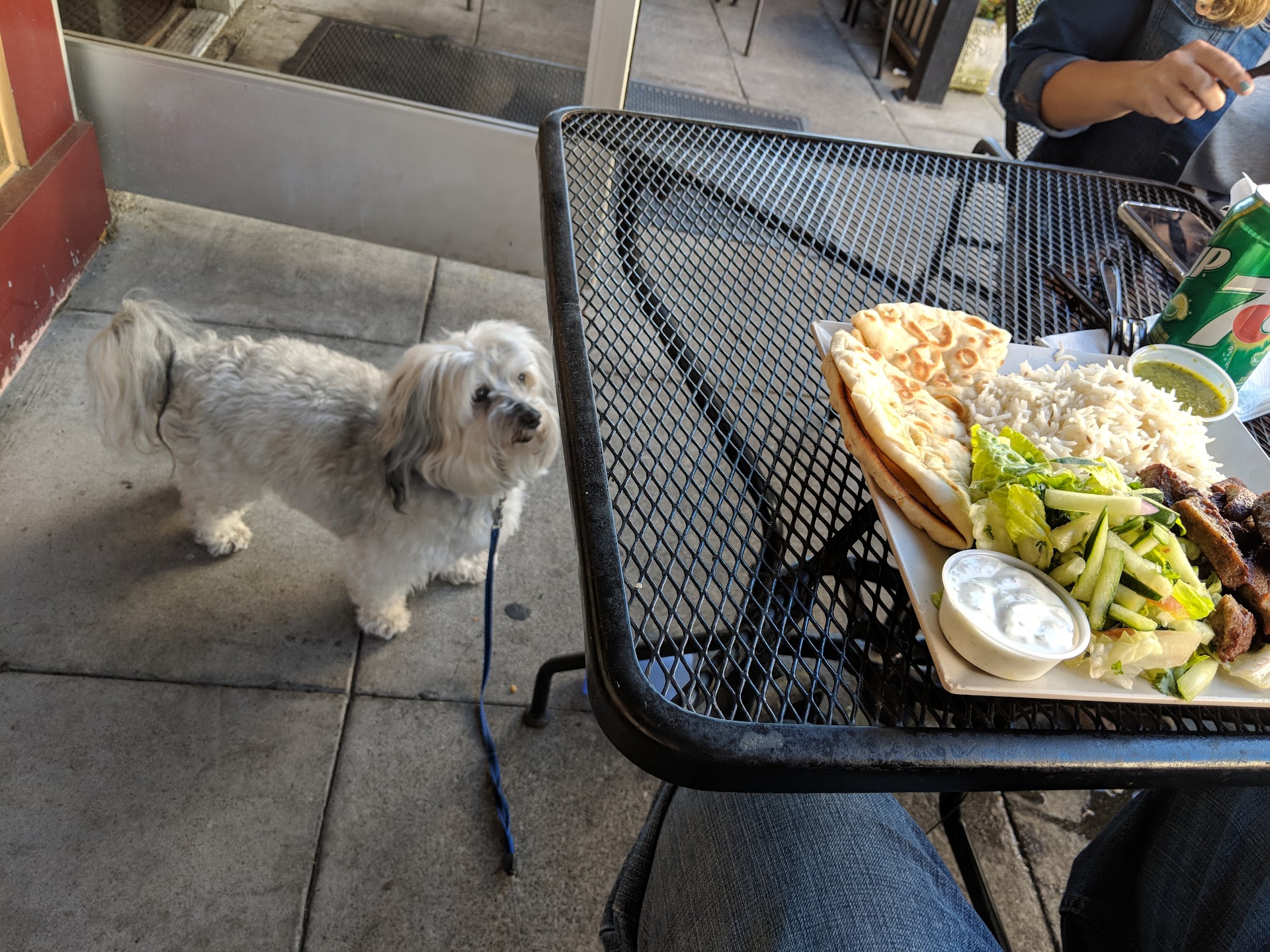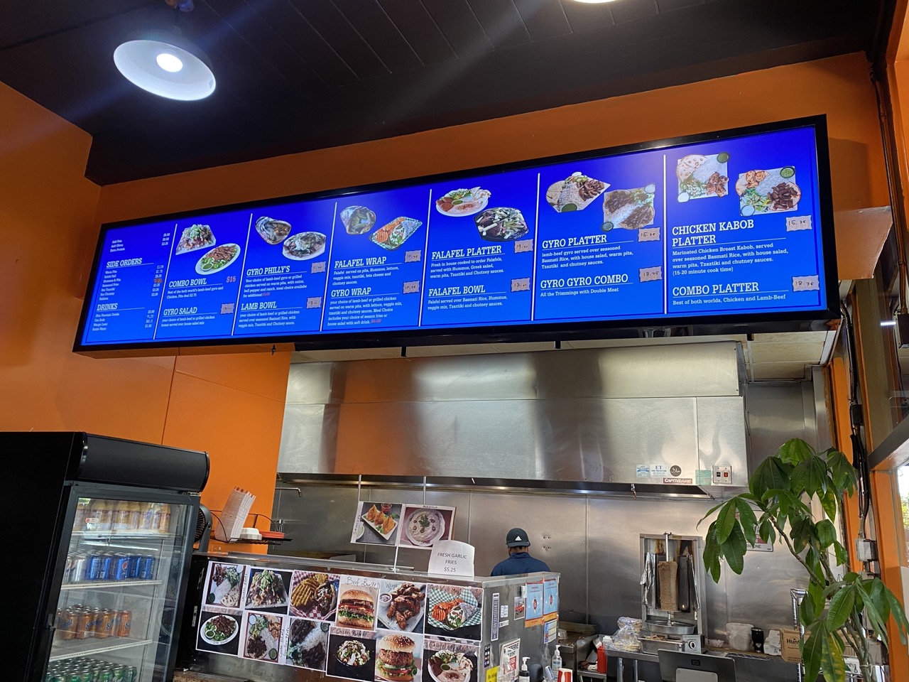 Read moreLocated across the road from a movie theater , this establishment offers both indoor and outdoor dining. It was not too busy when we came to this place. We ordered Combo Platter and Falafel platter. The serving size was good. Combo platter came with Chicken, lamb salad, basmati rice, bread, Tzatziki and Chutney. Falafel platter came with falafel plus hummus and the same sides. I frankly was expecting Combo platter to have chicken kabob and lamb-beef kabob but the lamb-beef component was gyro instead of kabob. I found it surprising, as they already have a "Gyro-Gyro} combo.