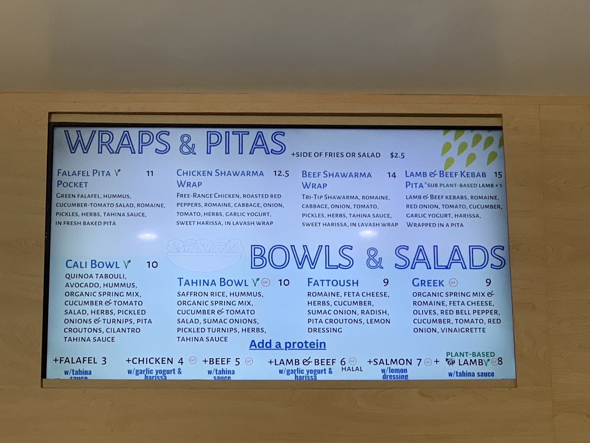 My usual to go is the Tahina bowl. This time, though, I chose the Fattoush salad topped with lamb-beef, and now this is my new favorite!