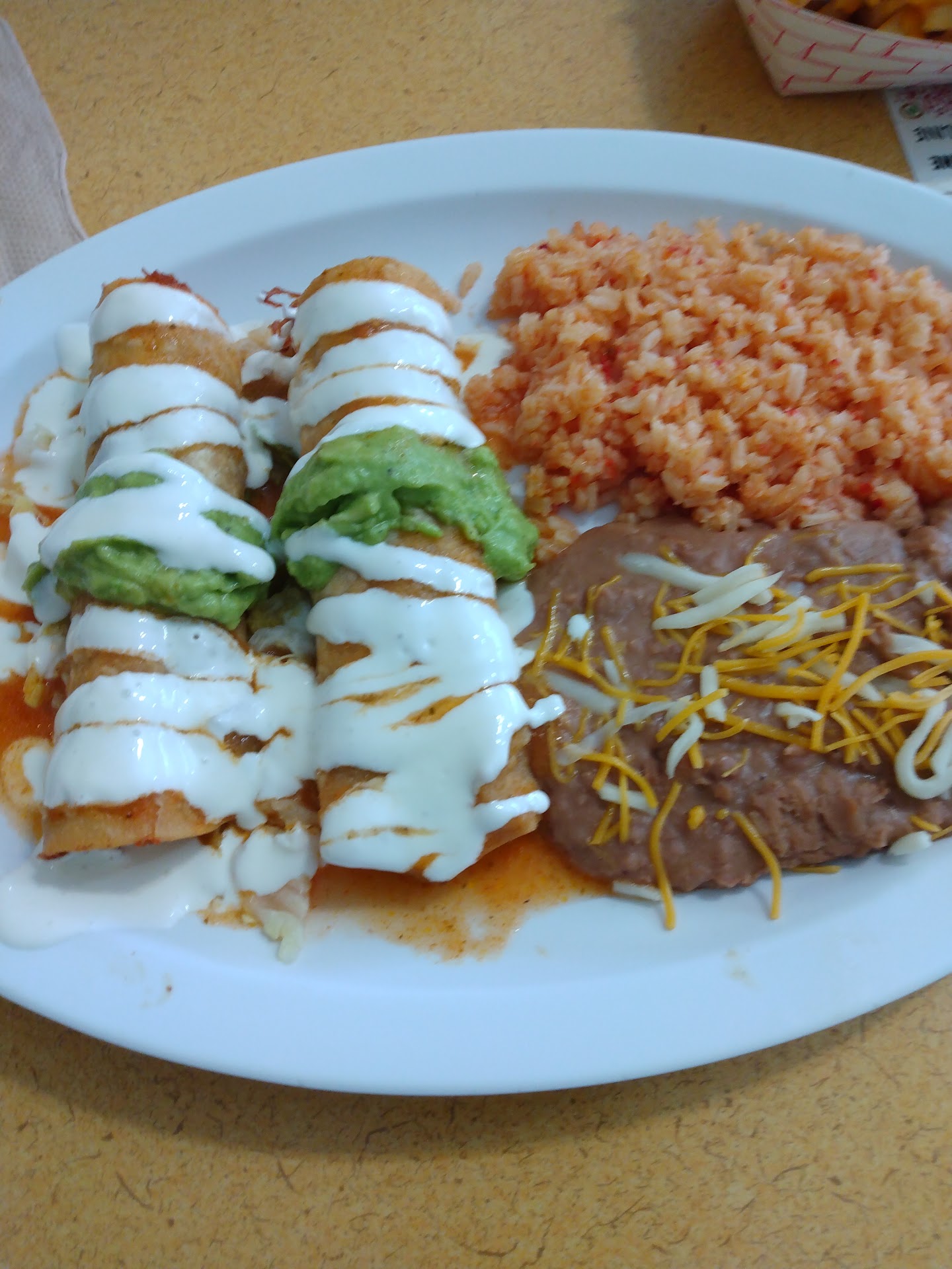 Been coming here for years out of convenience, but just recently started exploring the menu beyond burritos. The taquitos are amazing and not what you'd expect. These suckers are more like flautas in that they are much larger than any taquito I've seen. I order the chicken taquitos and they are huge, stuffed full of extremely juicy and flavorful shredded chicken, then deep fried and smothered in a shredded cheese blend, smashed avocado, and sour cream. It's a glorious guilty pleasure. I also tried for the first time a crispy chicken taco, where I'd normally order traditional street tacos. This taco had a lovely, very crispy shell with that tender, juicy shredded chicken filling with choice of pico on the inside. Then, the taco is drowned in a salsa roja that has a strong buffalo wing sauce influence. What I DO NOT recommend is their tamales, which breaks my heart because I am a tamale fiend and their tamales are just... Not good. The masa has an almost gelatinous texture and there is way too much of it in comparison to filling. Disappointing to...