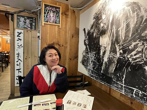 The decor, though, would make you feel otherwise - a lot of Japanese popular culture from Samurai films to Anime adorn the wall.