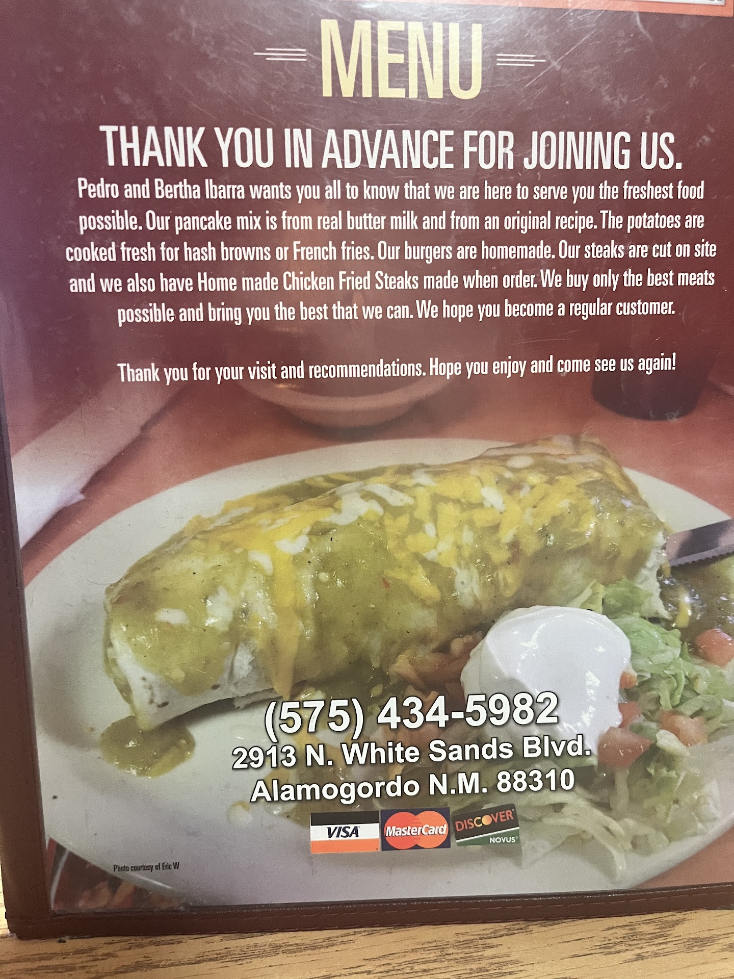 Ā Ā Ā Read moreMy first clue was that there was only one other customer in the restaurant when we arrived at 4 PM. My son ordered a Bacon Avacado Cheeseburger. I got a thing I read as chorizo and hashbrowns mixed together with my choice of egg. I asked for my eggs over medium and red sauce after finding out the green was quite a bit spicier. While we waited I checked reviews because I was concerned about the lack of customers. I was relieved to see 4 stars. The burger arrived first which was missing the avacado. The thing I got came as a scramble of egg, chorizo and apparently hashbrowns, topped in almost as much green sauce as food and 4 sprinkles of cheese (very modest portion size). The waitress offered to have her remake because of the green sauce. I asked about the eggs and was told that wasn't an option when she put it in. I accept that I may have read it wrong, but why didn't she tell me that. The cook had disappeared when the waitress took the burger back to get the avacado so it took several more minutes. I feel bad giving a negative review. This is my first for a restaurant. My husband always says never to go to a restaurant that doesn't have any cars in the parking lot. I guess he's right. Two stars because the waitress did offer to have mine remade and I think my son liked his burger after he got...